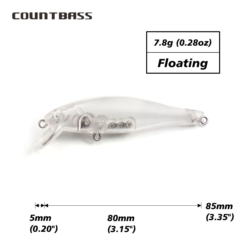 Countbass 10 Uds. Señuelos duros en blanco, 80mm/3,15 "7,8g/0,3oz, cebos duros flotantes para pececillos, cebos de pesca sin pintar, cebos duros, Wobblers