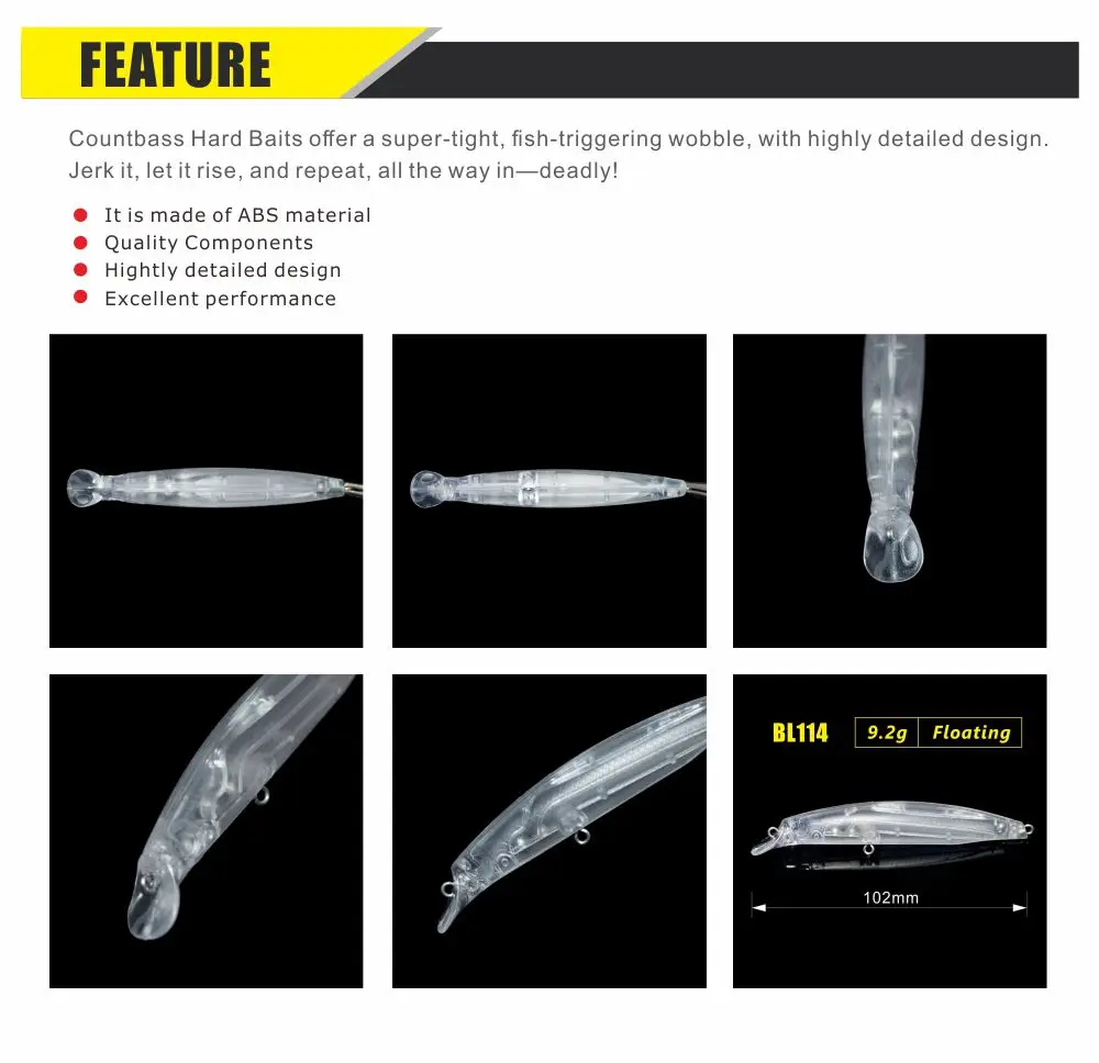 Countbass 10 Uds. Señuelos duros en blanco, 102mm/4 "9g/0,32oz señuelo pececillo flotante, cebos de pesca sin pintar, Wobblers, cuerpos de cebo duro