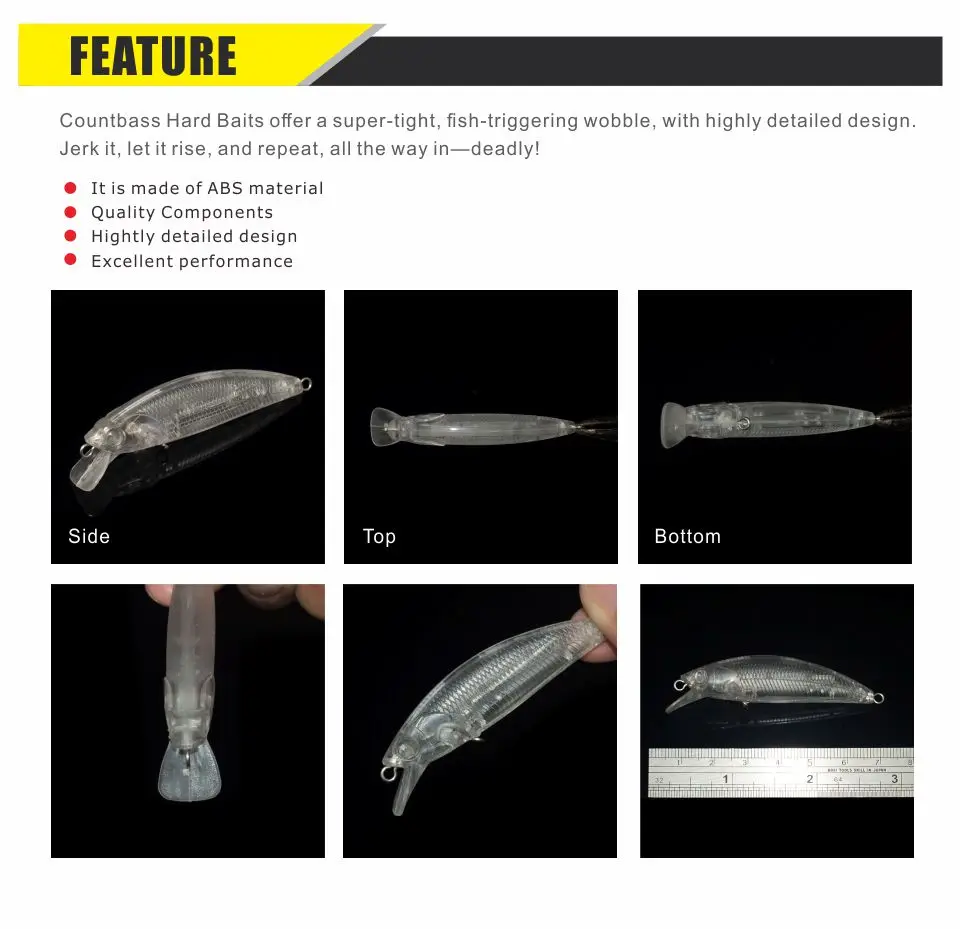 Countbass 10 Uds. Señuelos duros en blanco 2,36 "/60mm 0,14 oz/4g, cebos de pesca flotantes sin pintar, pececillos, Wobblers, señuelos para peces de agua dulce