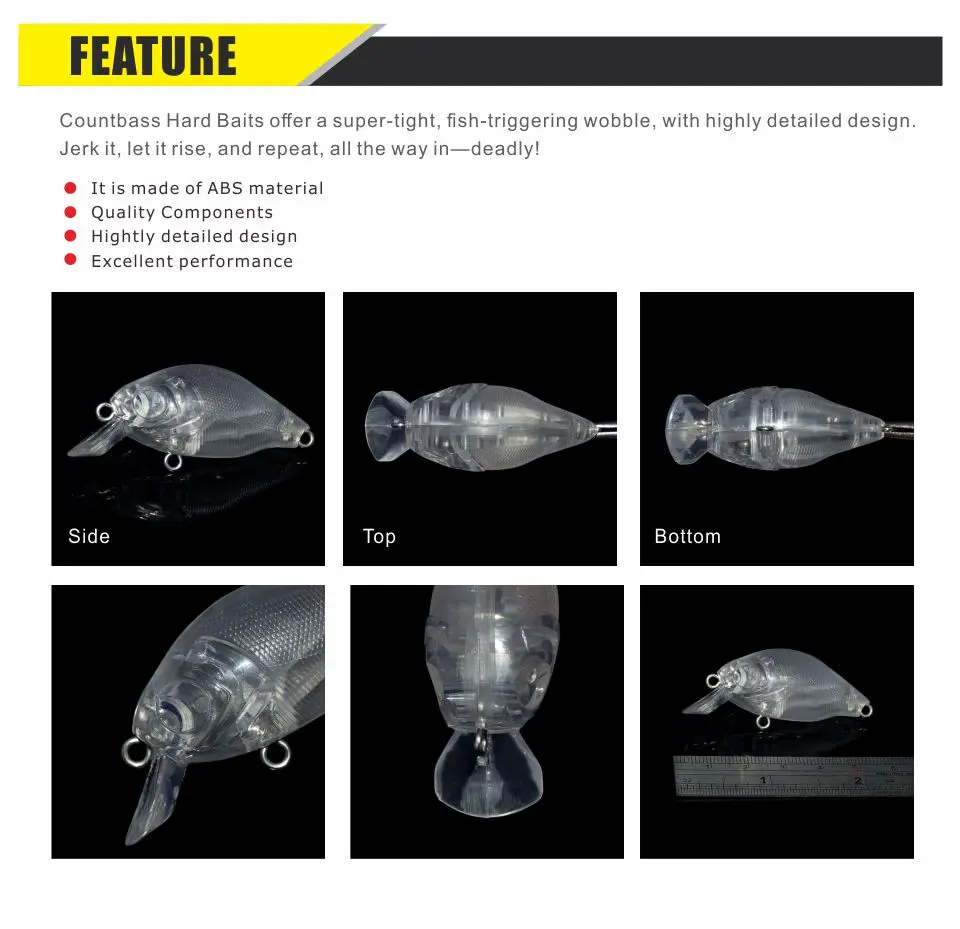 Countbass 10 Uds. Señuelos duros en blanco, Crankbait flotante 43mm/1,7 "6g/0,21oz, cebos de pesca sin pintar, enchufe, Wobblers