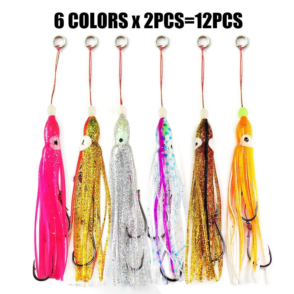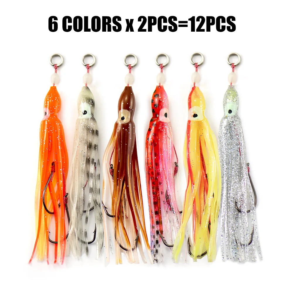 Countbass 12 Uds ganchos de asistencia con faldas de calamar, gancho de asistencia de plantilla Inchiku, gancho de asistencia de plantillas de pulpo, gancho de plantilla de calamar