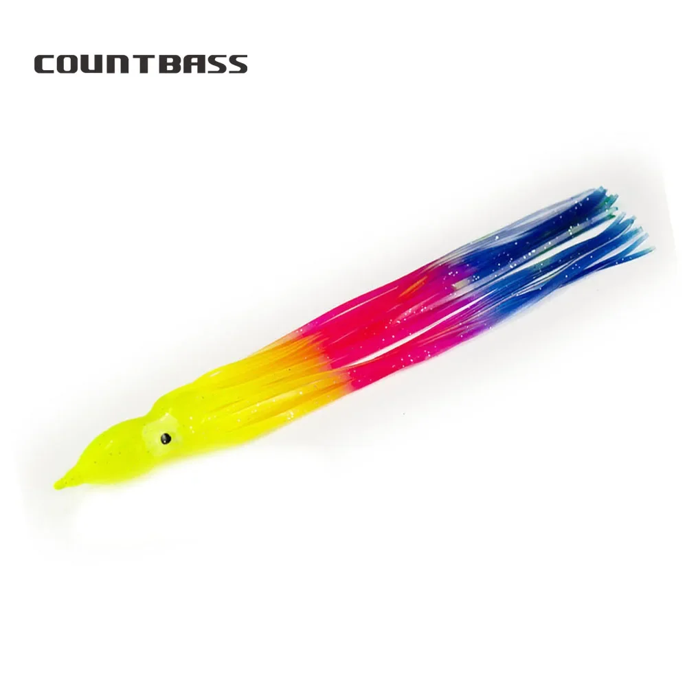 Countbass 2 uds 26cm/10 "faldas de calamar para curricán, Señuelos de pesca de pulpo blando, cebos Hoochie, cola de falda de atún Marlin Wahoo