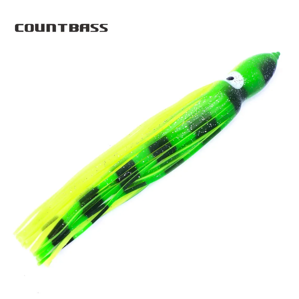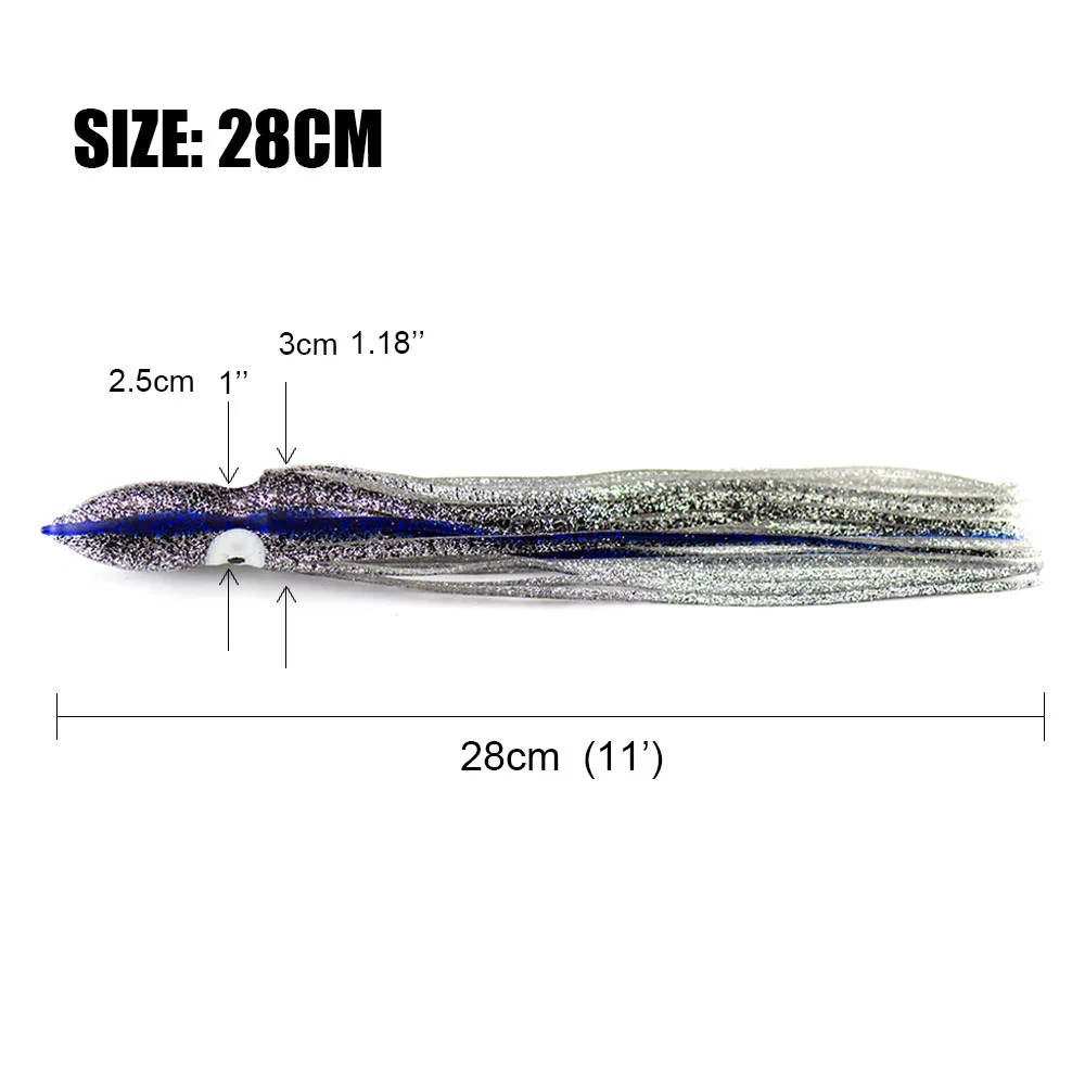 Countbass 2 uds 28cm faldas de calamar curricán, señuelos de pulpo suaves, cebos de pesca Hoochie, cola de atún Marlin Wahoo, aparejos artesanales