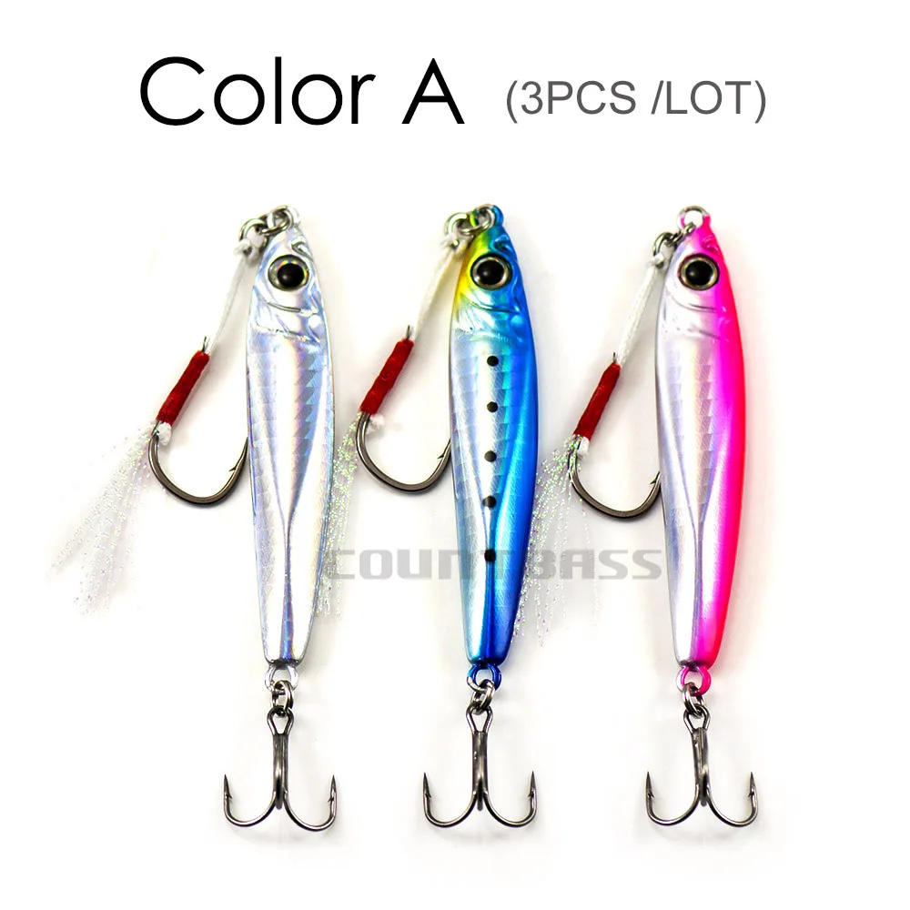 COUNTBASS 3 uds 15G 25G 35G 45G 65G francotirador Metal fundido Pesca Jigging señuelos Color UV, plantillas de Pesca con anzuelo de asistencia
