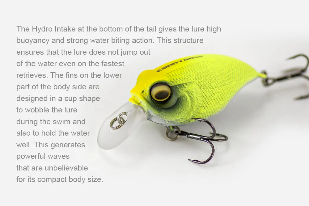 Manivela que flota desde el cuerpo es muy pequeña, lo que produce lágrimas para recuperar vibraciones intensas para estimular el ataque de los depredadores.Especialmente indicado para pescar truchas y percas en lagos y ríos.