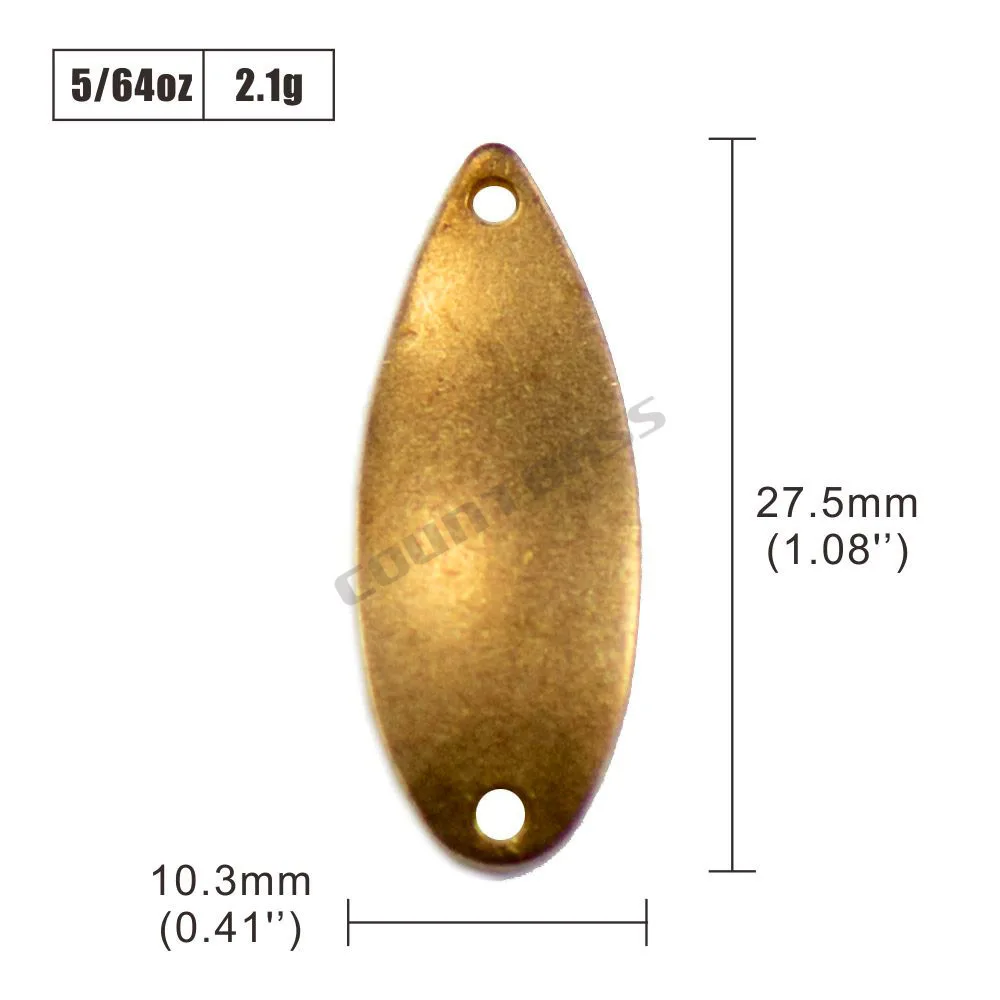 Countbass 50 Uds. Cucharas de pesca de latón Micro salmón en blanco SP012 2,1g (5/64oz), cebos de señuelo para Lucio sin pintar