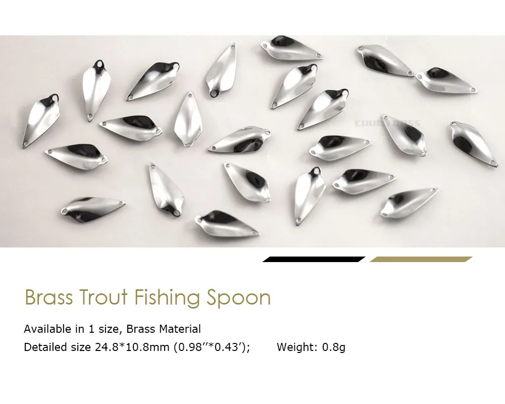 COUNTBASS 50 Uds. Cucharas de pesca pequeñas de latón en blanco 0,8g (1/2 oz) Área de trucha giratoria señuelos de pescador sin pintar