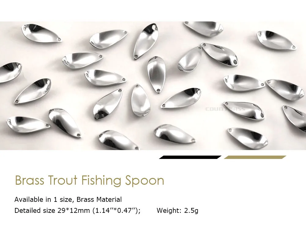 COUNTBASS 50 Uds. Cucharas de pesca de salmón de latón en blanco 2,5g (3/32oz) Área de trucha giratoria señuelos de pescador sin pintar