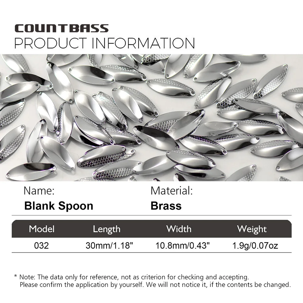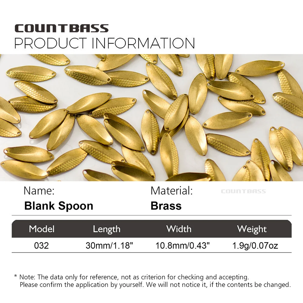 Countbass 50 Uds. Cucharas de pesca de salmón de latón en blanco SP032 1,9g (1/16oz), cebos de señuelo de Lucio sin pintar