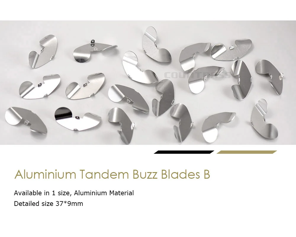 These blades are used on buzzbaits and other surface lures. The counter rotating blades can cause a serious commotion. Stamped from aluminum.