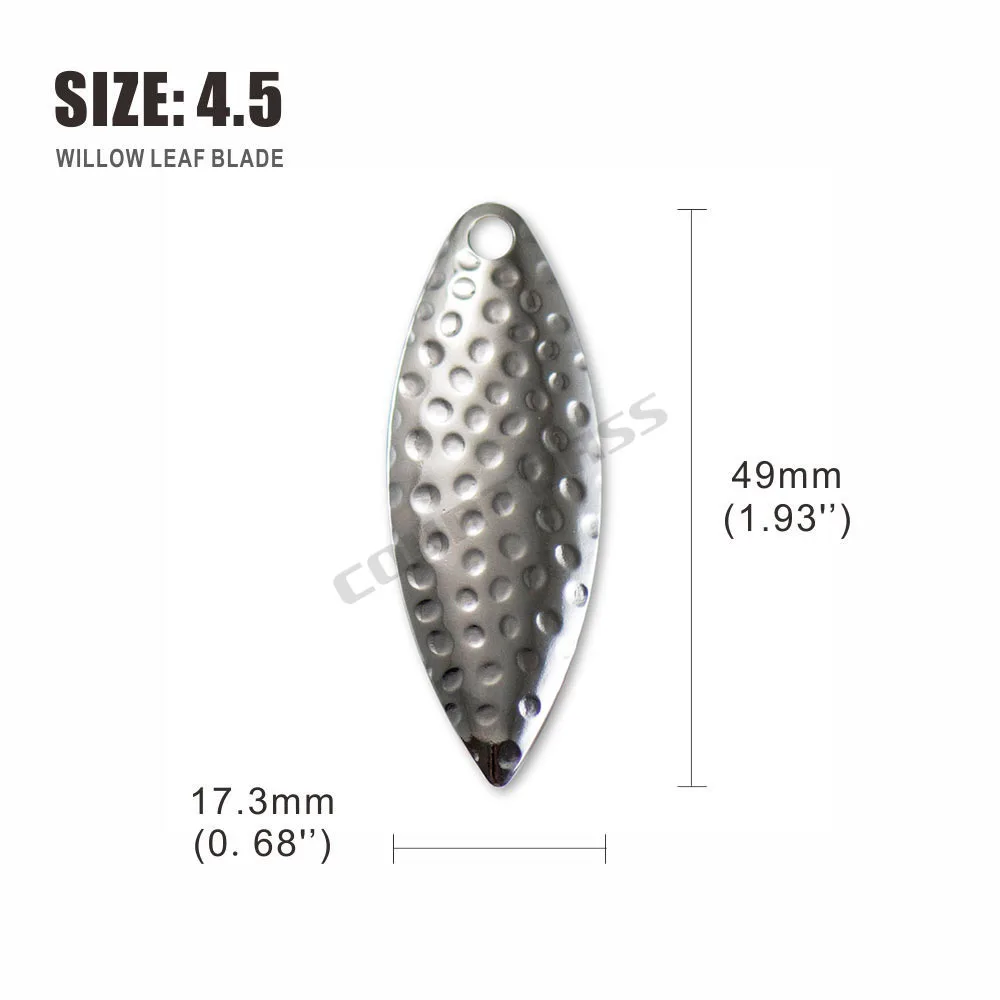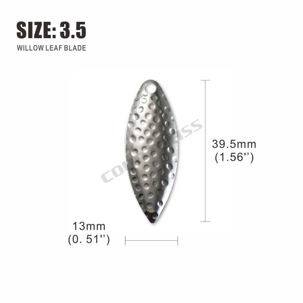 ¡Las hojas de sauowleaf son asesinos de spinnerbaits!Increíble en los trolls de las pandillas.La hoja de hoja de sauce es imprescindible para todos los pescadores serios.Las hojas de hoja de sauce maximizan el destello y minimizan la vibración del señuelo, y levantan las creaciones del señuelo mientras nada por el agua.