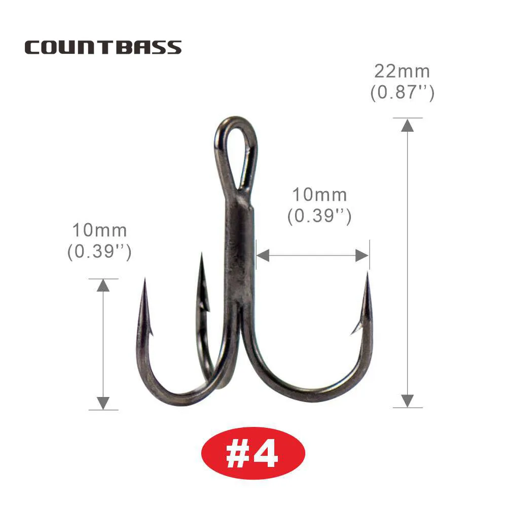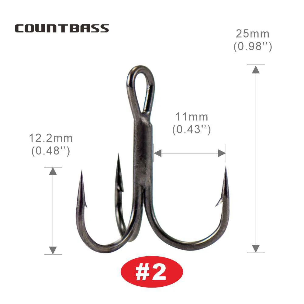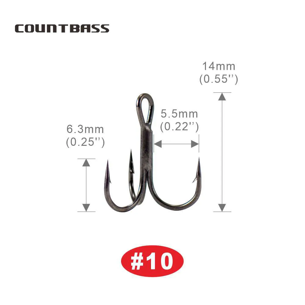 COUNTBASS-anzuelos triples redondos de acero con alto contenido de carbono para pesca, cebos duros de níquel negro, 2 #4 #6 #8 #10 #12 #14 #, 20 piezas