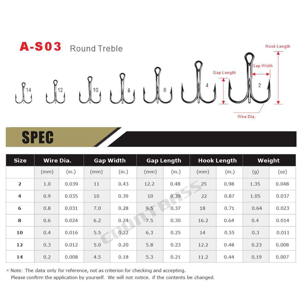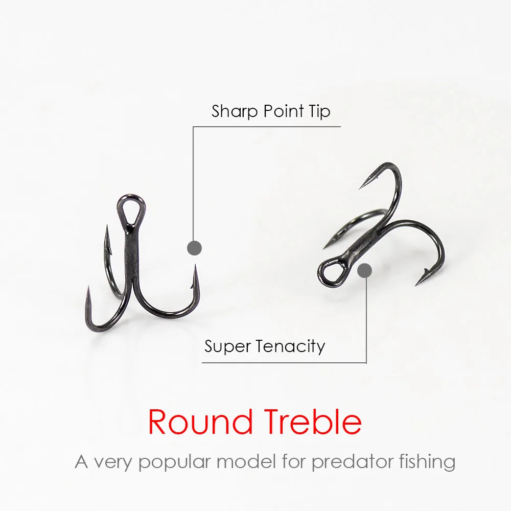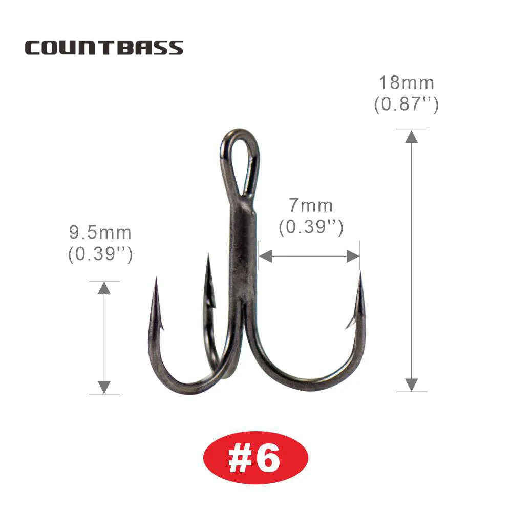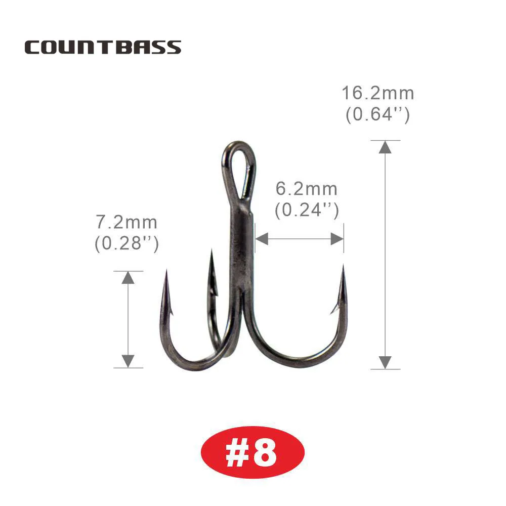 COUNTBASS-anzuelos triples redondos de acero con alto contenido de carbono para pesca, cebos duros de níquel negro, 2 #4 #6 #8 #10 #12 #14 #, 20 piezas