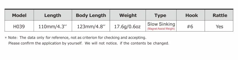 Countbass Magnete de hundimiento lento Peso Minnow 110 mm 4-21/64" 17,6 g 5/8 oz. Señuelo de pesca con cebo duro de 1,2 m y 4'