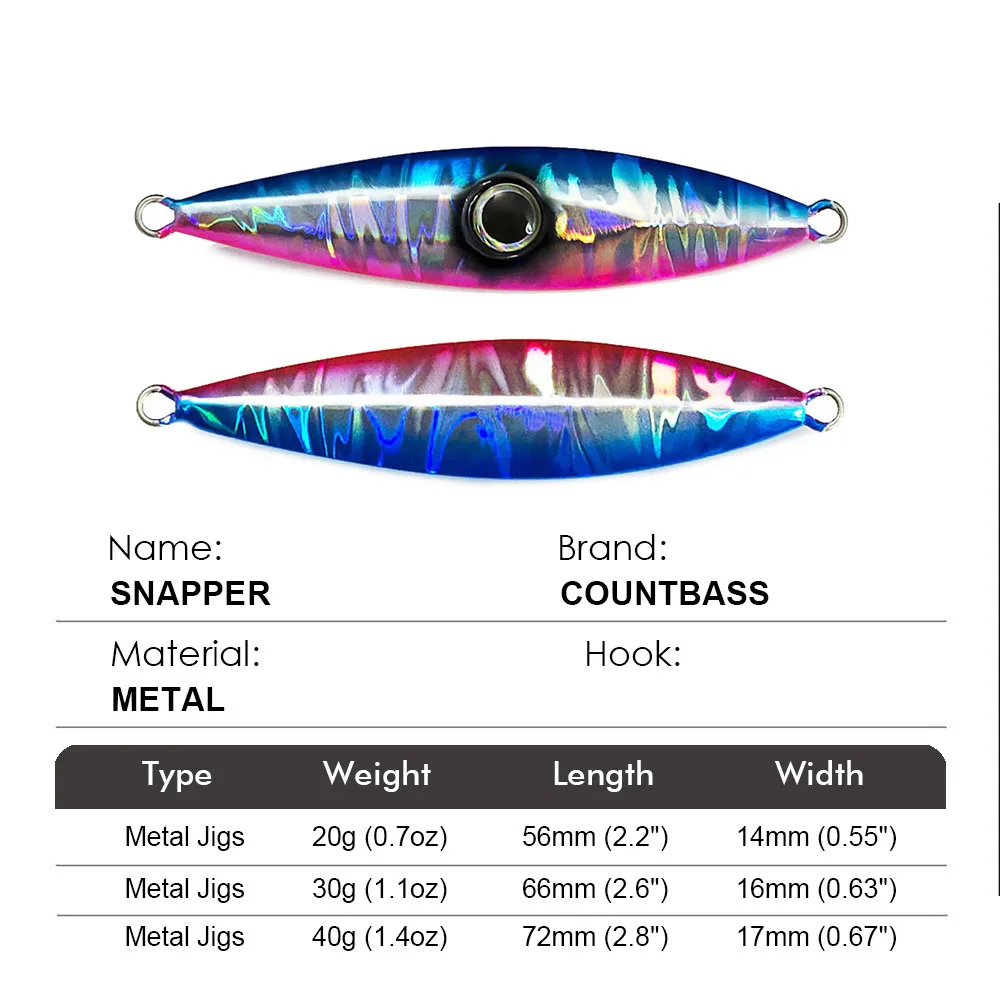 Countbass Metal Jigging Slim Jigs, juego de lubina, Señuelos de Pesca, 20g, 30g, 40g