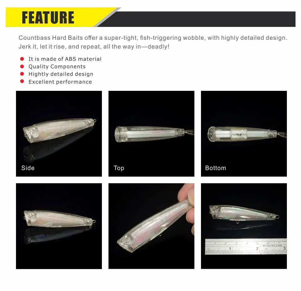 Countbass-Señuelos duros en blanco, 10 Uds., 65mm/2,6 ", 5,5g/0,2oz, cebos de pesca sin pintar, Topwater, Popper, Wobblers, señuelo para peces de agua dulce