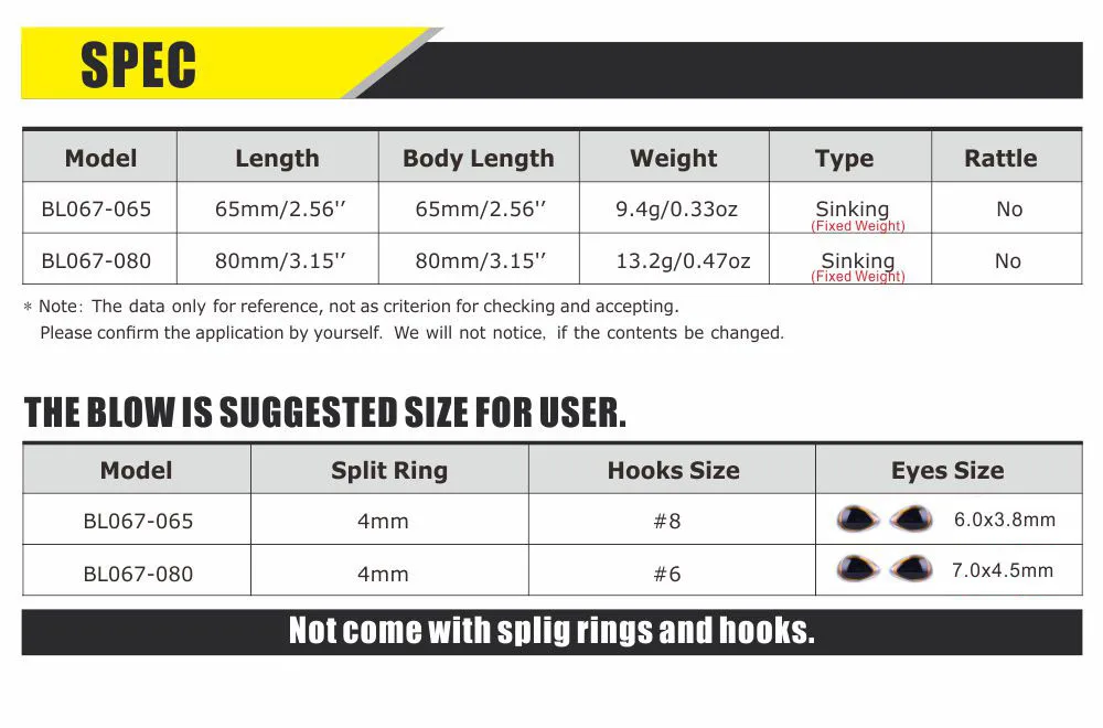 Countbass-Señuelos duros en blanco, 10 Uds., 65mm/2,6 ", 9,4g/0,33oz, 80mm/3,2 "13g/0,47oz, peso fijo, hundimiento, lápiz de pesca sin pintar