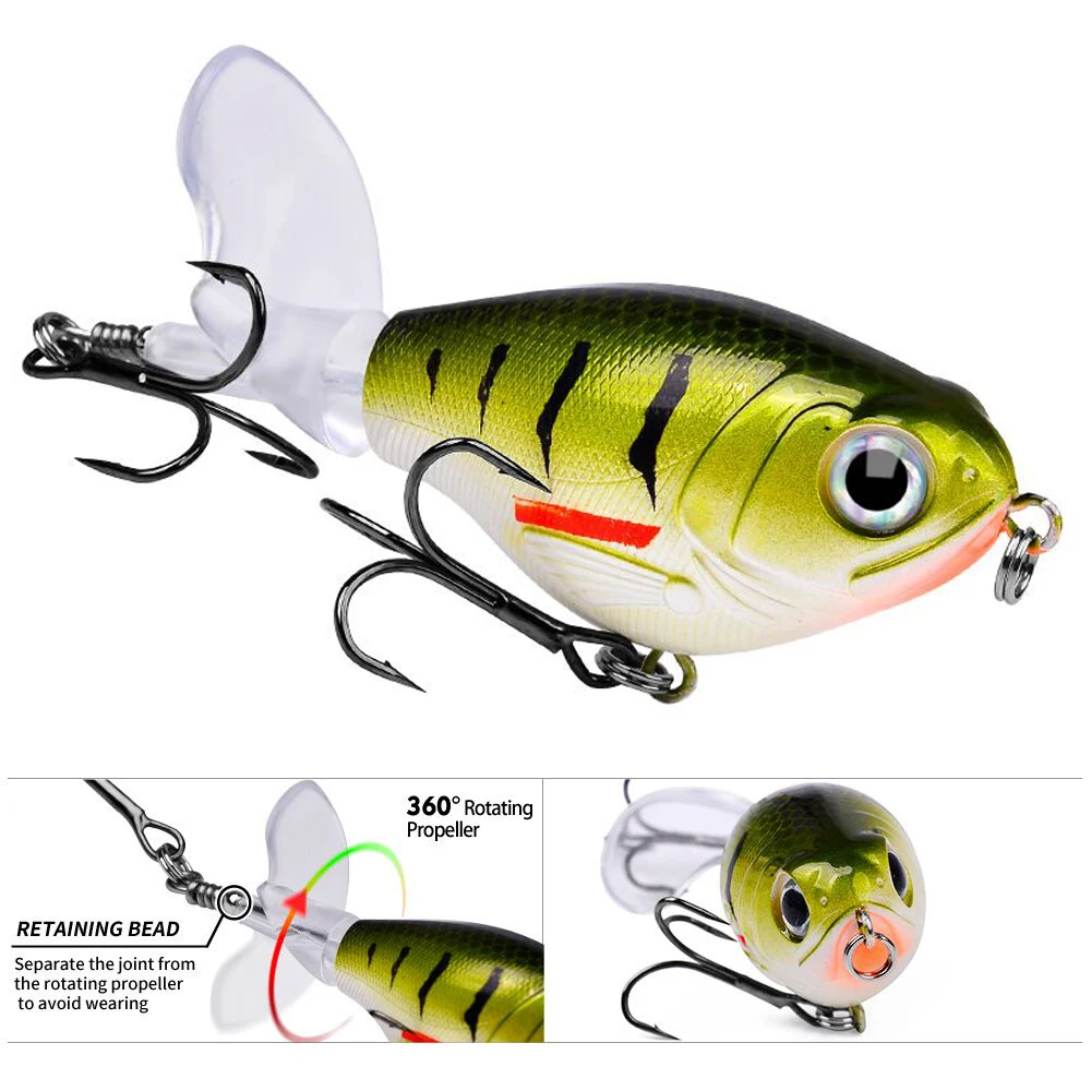 1. Señuelo giratorio WHOPPER plopper flotante, con gancho triple de púas y súper afilado.