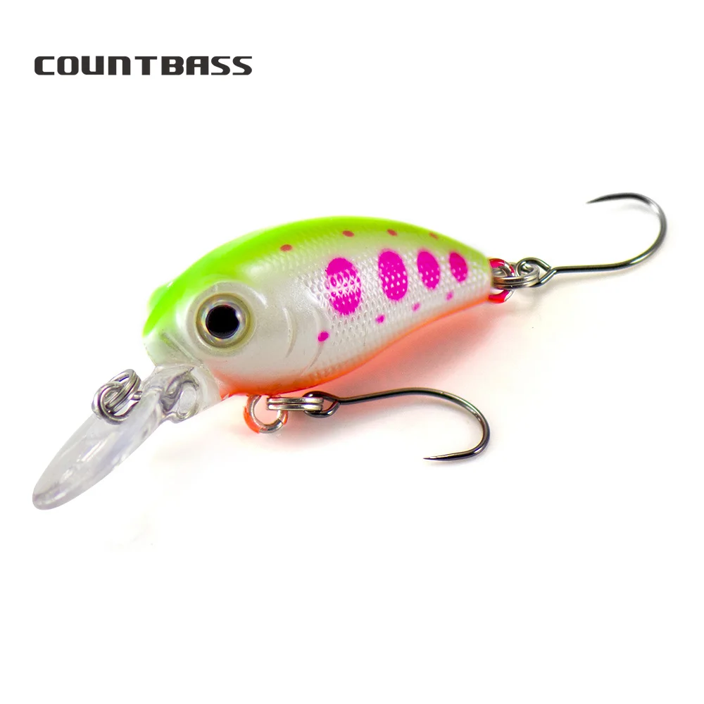 Countbass-señuelos de pesca de plástico duro, cebo de manivela, Wobbler, agua dulce, salmón, tipo de pez, 32mm, 3,2g