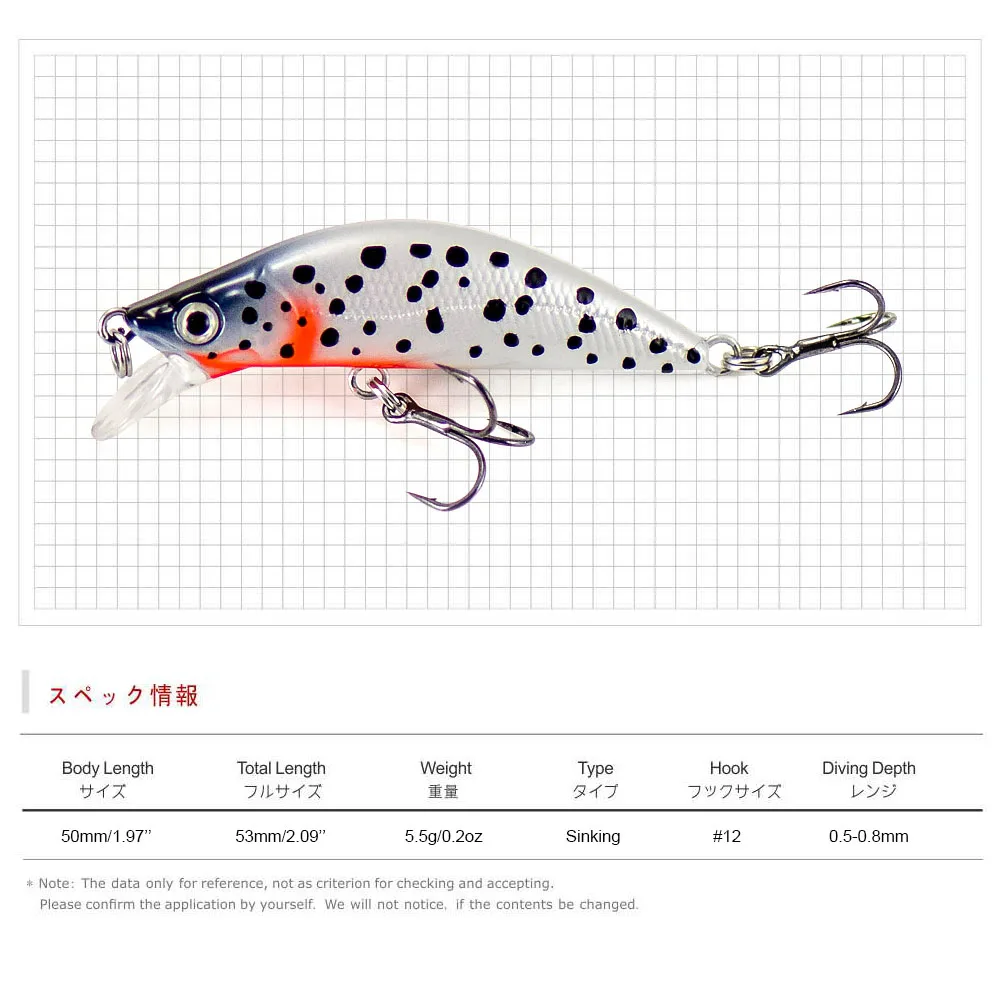 COUNTBASS Trucha Minnow 50mm 5,5g (1,97 ''0,2 oz) Señuelos de pesca hundidos Wobbler de plástico perca Leurre aparejos de pescador