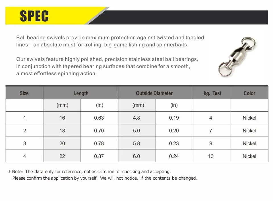 Coutbass 50 piezas súper rodamiento de bolas giratorio con conector de anillos divididos, tamaño 1,2,3,4 accesorios de pesca