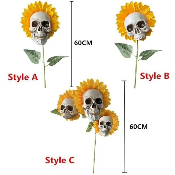 Cráneo espeluznante Flores de girasol Cráneo Festival Arte Artesanía Decoración de jardín Simulación Adornos de flores Decoraciones de HalloweenDecoración de jardín de calavera de girasol artificial, decoración de Halloween de esqueleto de plantas de simulación al aire libre, estaca de patio de césped emocionante, adorno de escena de terror
