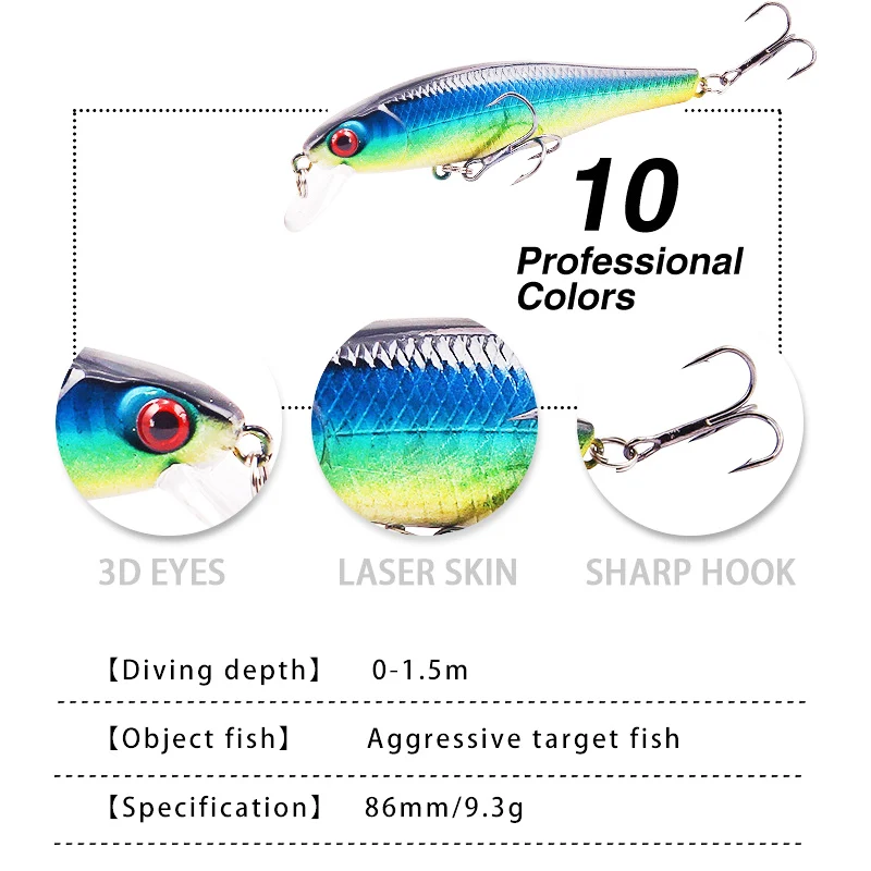 Crank Minnow Wobbler Jerkbait señuelo de pesca 8,8 Cm 9G Isca Artificial Carkbait Wobblers Swimbait aparejos de pesca para lubina Lucio carpa