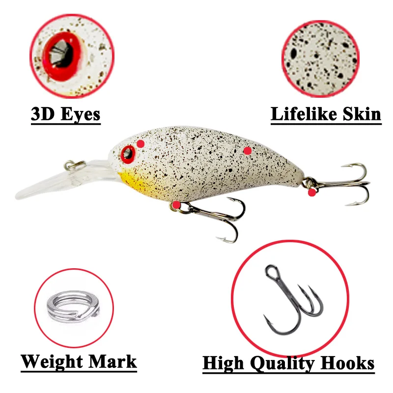 6. MATERIAL ECOLÓGICO: con material ABS de alto rendimiento, que ofrece Señuelos de Pesca sin olor y reutilizables, los cebos de manivela de agua superior son incomparables en CALIDAD y DURABILIDAD.