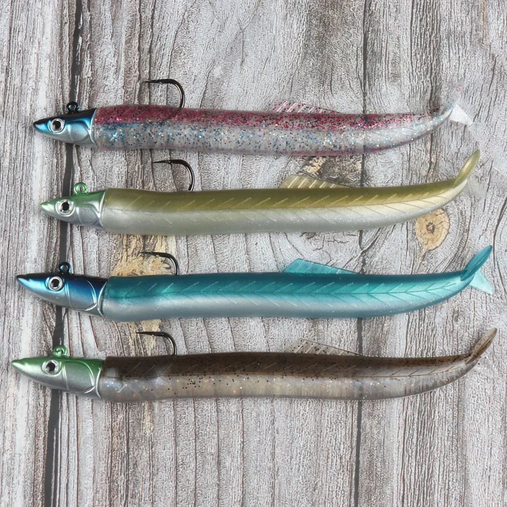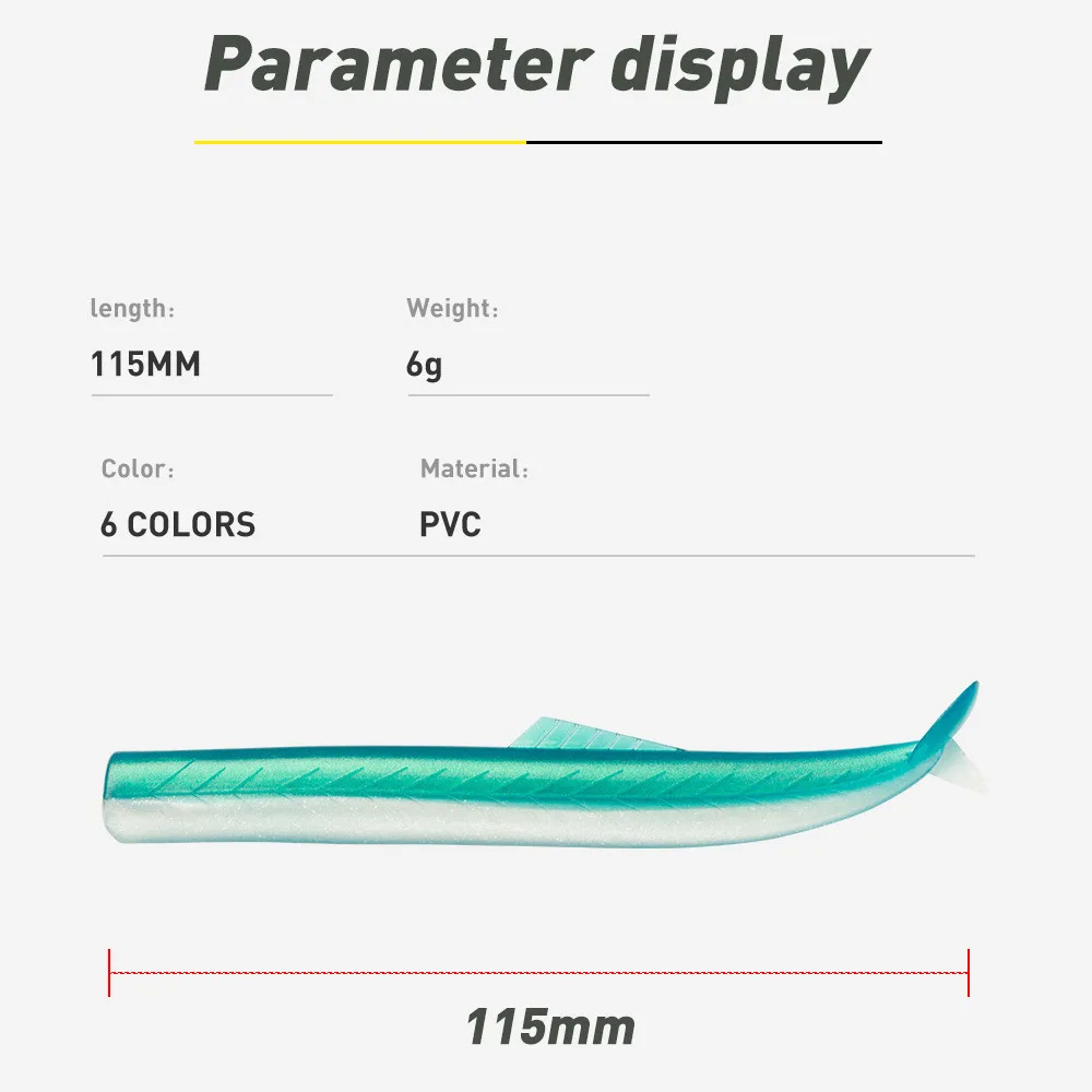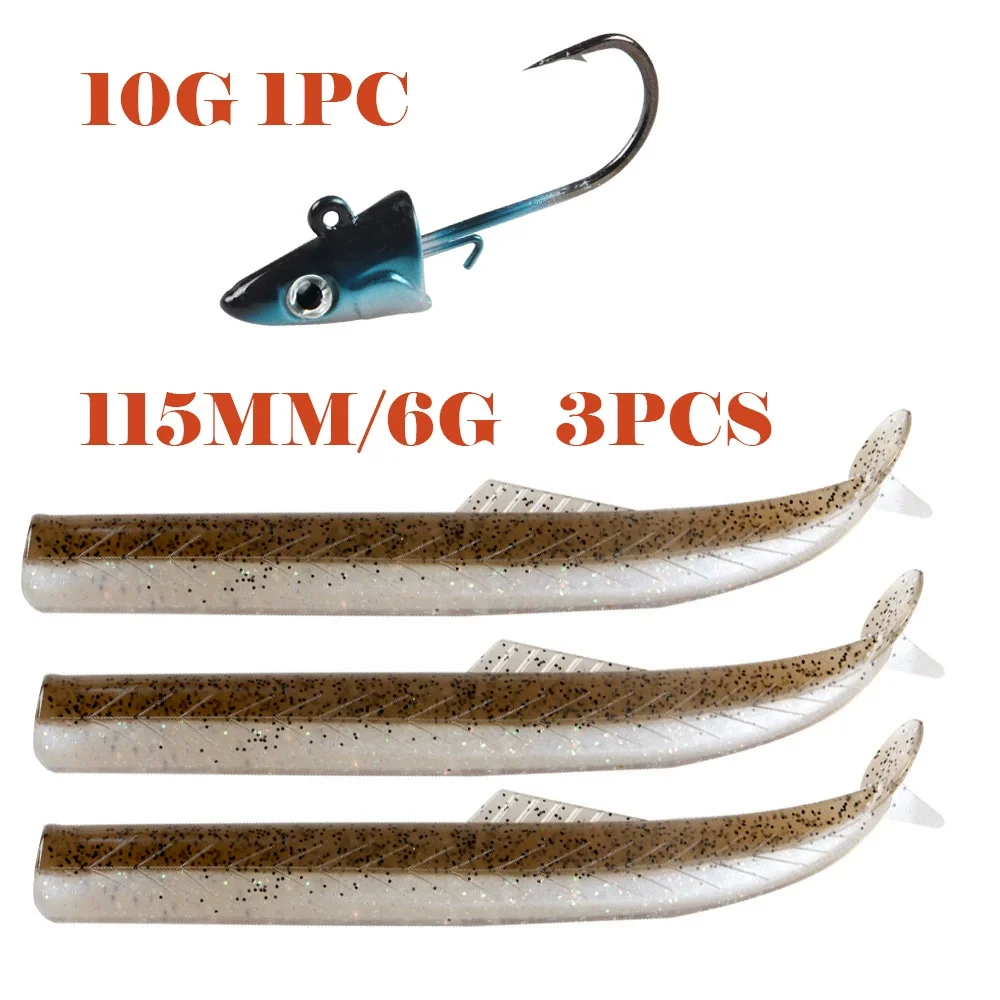 Crazy Sand Eel 115mm 6g señuelo de pesca suave anzuelo con cabeza de plantilla negro Minnow cebo Artificial agua salada mar lubina Swimbait Tackle Gear