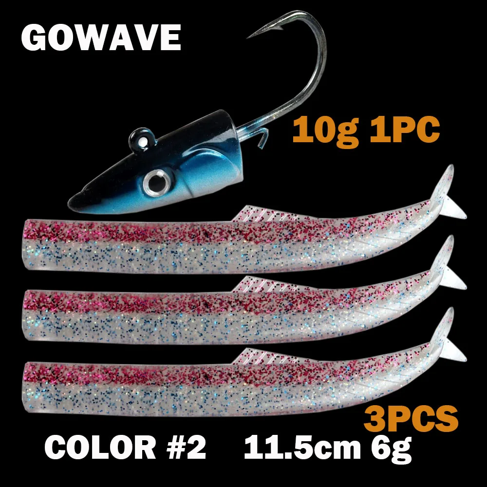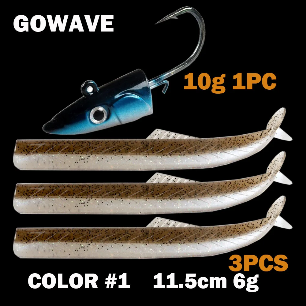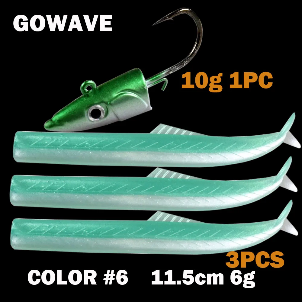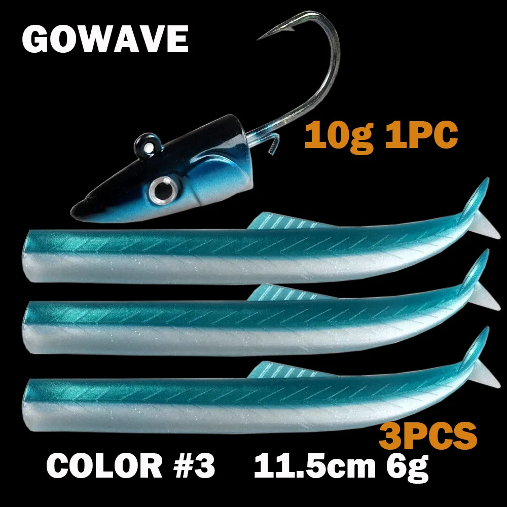 Crazy Sand Eel 115mm 6g señuelo de pesca suave anzuelo con cabeza de plantilla negro Minnow cebo Artificial agua salada mar lubina Swimbait Tackle Gear