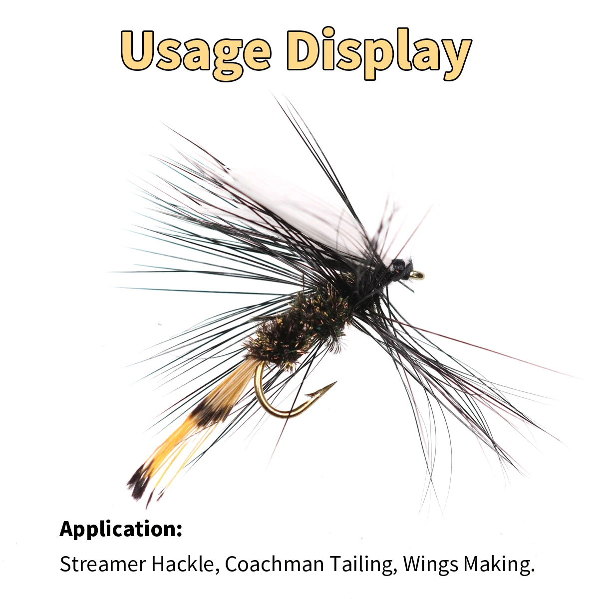 Aplicación: Streamer Hackle, Coachman Tailing, Fabricación de alas.