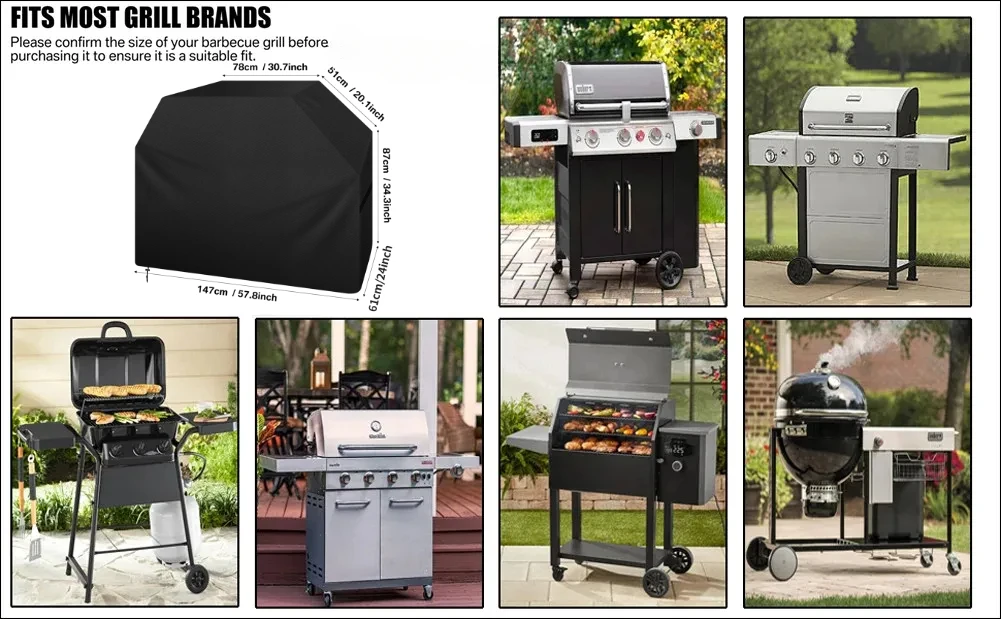 【Tamaño grande y se adapta a la mayoría de las parrillas】La cubierta de la parrilla mejorada mide 147x61x122 CM. No está diseñada para cubrir las ruedas por completo, la parrilla se puede mover libremente con la cubierta puesta.La funda para barbacoa se adapta a las marcas más populares de la parrilla y mantendrá su parrilla para barbacoa al aire libre o sus accesorios para asar nuevos a largo plazo.Por favor, mida su parrilla antes de realizar el pedido.