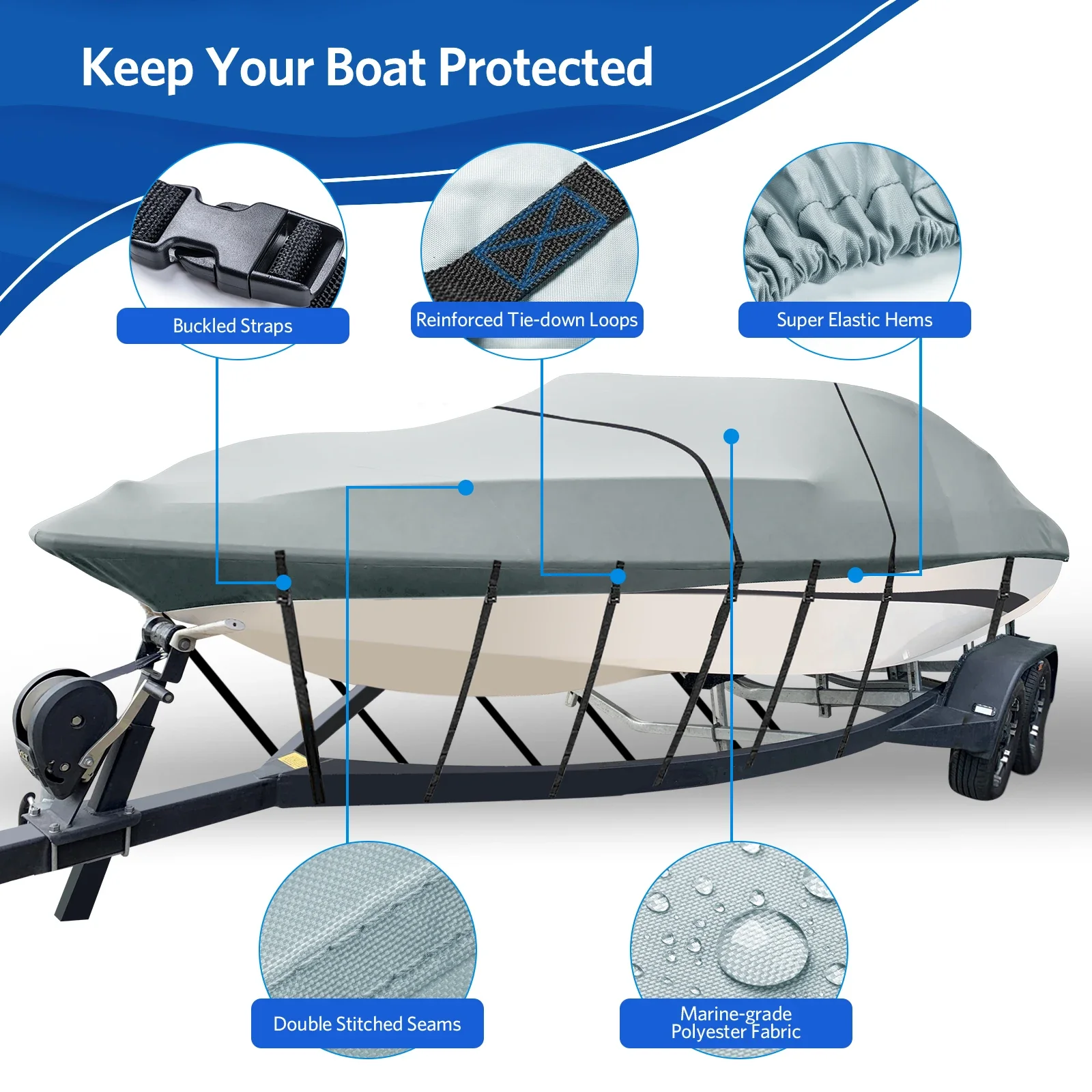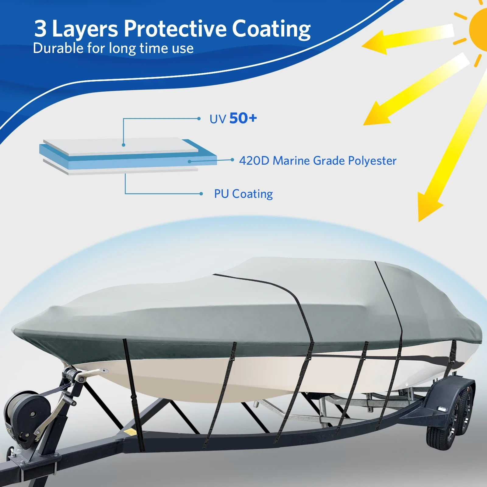 Cubierta de barco de alta resistencia, cubierta 100% impermeable, adaptable a v-hull, tri-hull, cubierta para lancha rápida de pesca