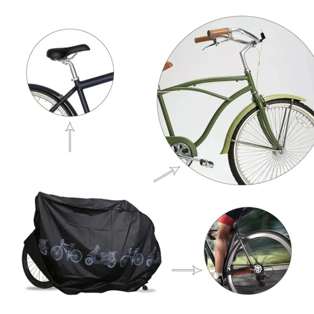 Nuevo y de alta calidad Tipo: cubierta de lluvia para bicicleta Tamaño: 100*200cm (39,37 * 78.74in) Material:PEVA Color: como en la imagen Características:-a prueba de polvo e impermeable: mantenga su bicicleta protegida del polvo y el agua con esta funda fiable para bicicleta. Proporciona un escudo contra la suciedad, los escombros y la lluvia, asegurando que su bicicleta se mantenga limpia y seca. -Protección UV: Protege tu bicicleta de los dañinos rayos UV con esta cubierta. Bloquea eficazmente los rayos del sol, evitando la decoloración y el daño a la pintura y los componentes de su bicicleta. -Material de PEVA: esta funda para bicicleta está hecha de material de PEVA de alta calidad, conocido por su durabilidad y resistencia al desgarro. Proporciona una protección fiable para su bicicleta. -Compatibilidad versátil: diseñado para adaptarse a varios tipos de bicicletas, incluyendo bicicletas normales, bicicletas de montaña y bicicletas eléctricas. Ofrece compatibilidad universal para su comodidad. -Fácil de usar: instalar y quitar esta cubierta de bicicleta es muy fácil. Cuenta con un diseño fácil de usar con bordes elásticos para un ajuste cómodo y seguro, lo que garantiza un uso sin complicaciones. El paquete incluye: 1 cubierta de lluvia para bicicleta