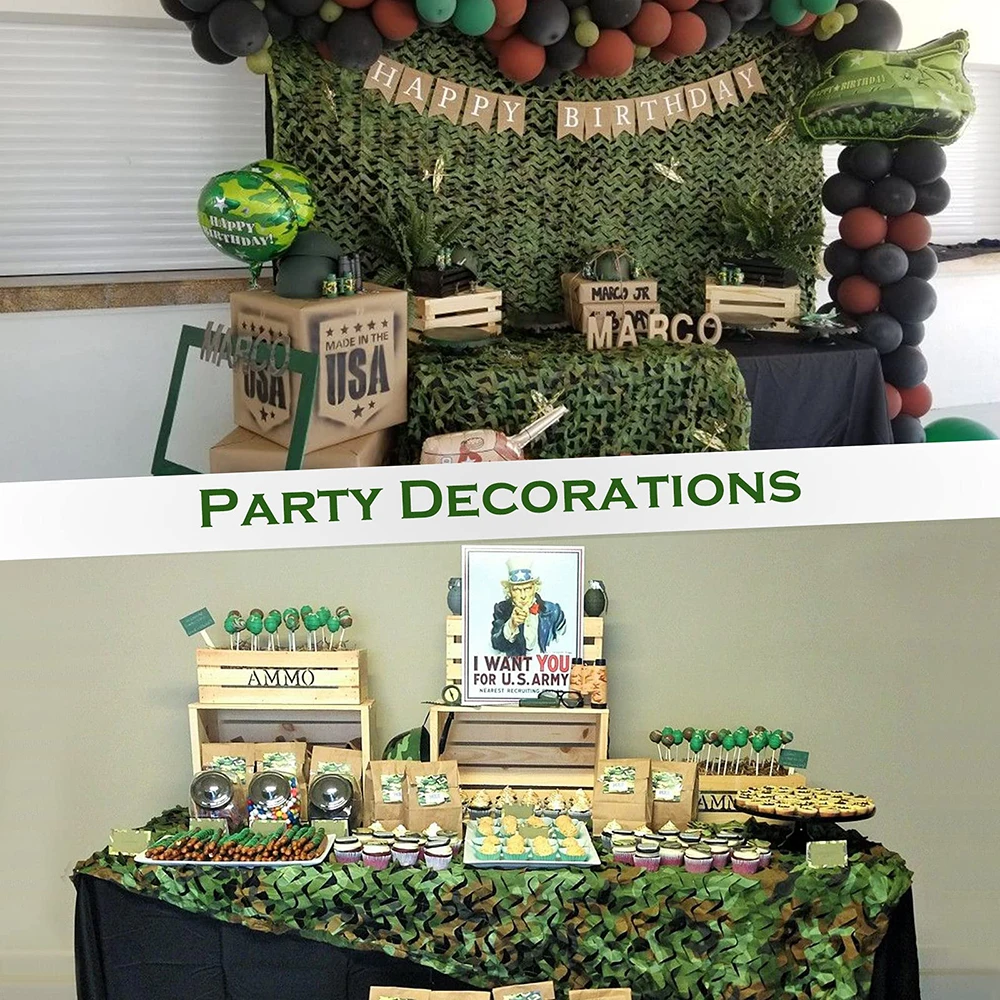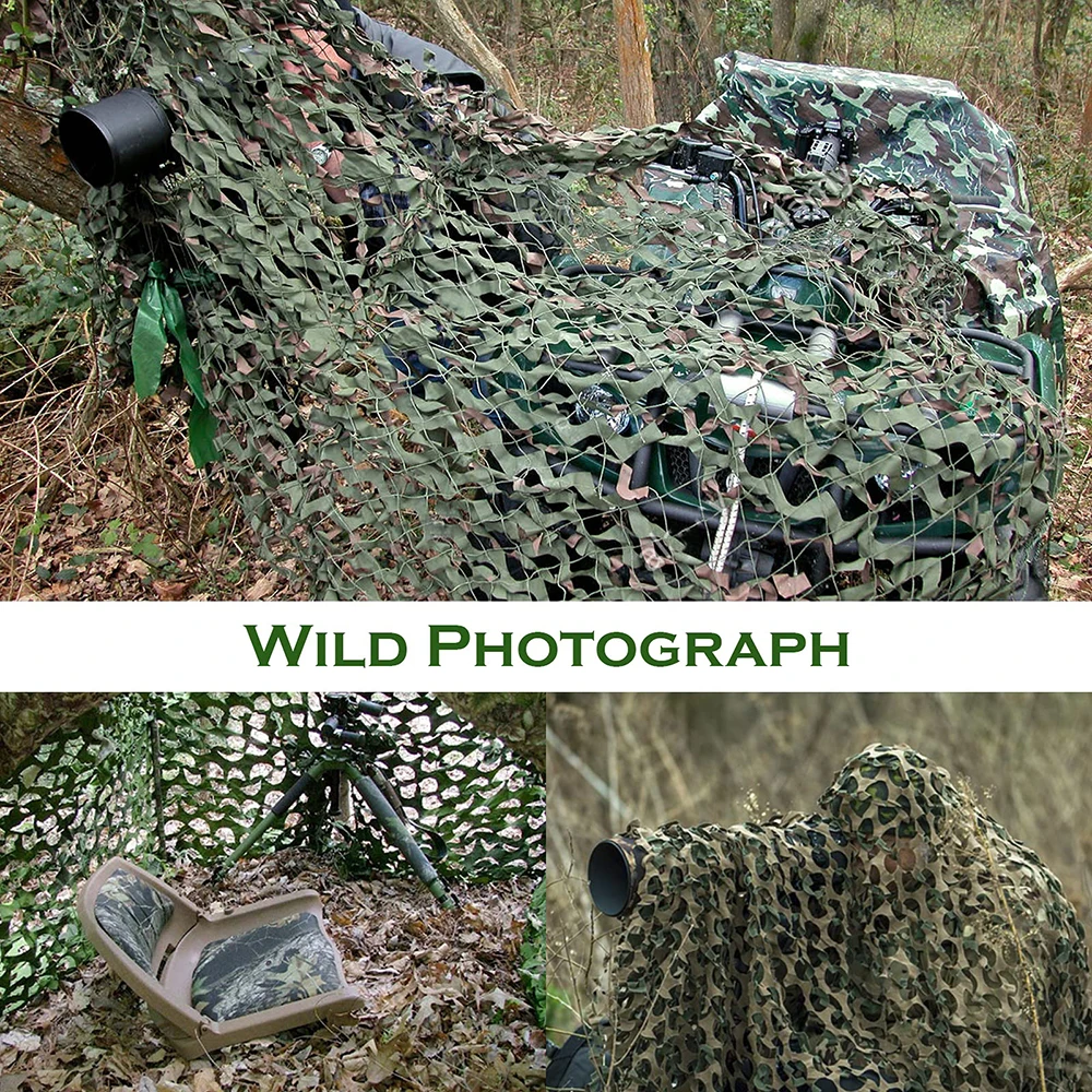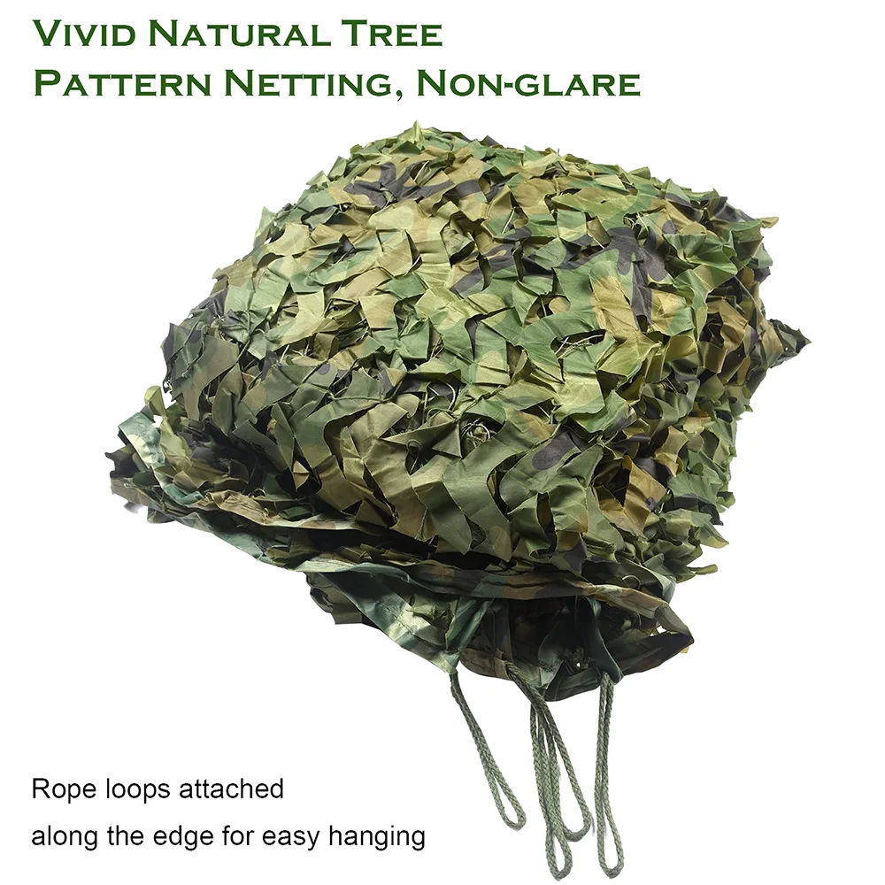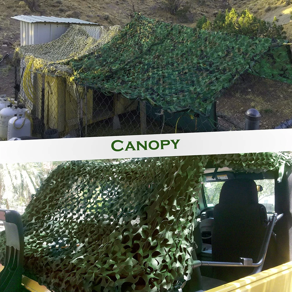 -Red de camuflaje militar: hay una eslinga en cada esquina para que pueda colgarla fácilmente. Hemos cosido y reforzado los bordes de la red de camuflaje para que la red de camuflaje tenga una vida útil más larga y sea más fácil de usar.