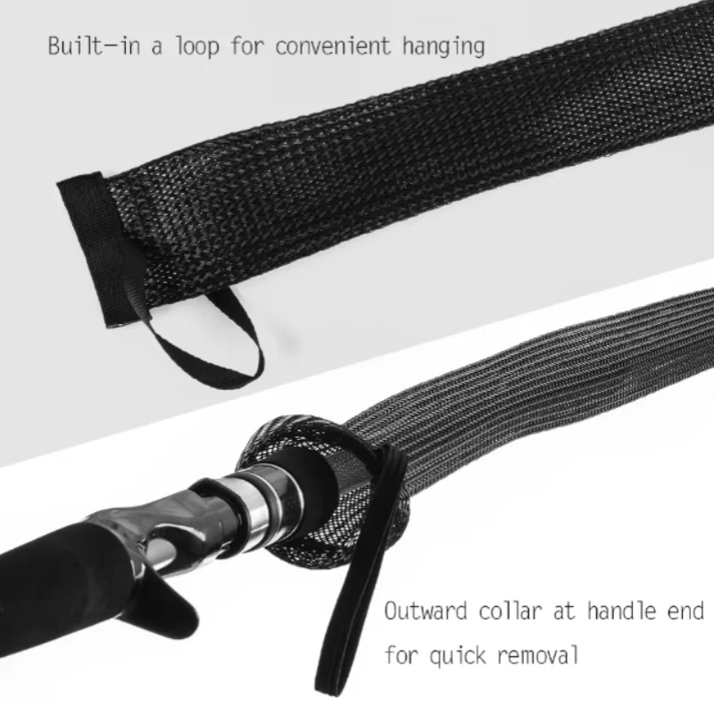 Esta funda puede proteger su valiosa caña de pescar para que no se enrede y se dañe.Es un accesorio útil transpirable, ampliable y resistente al calor para su caña.
