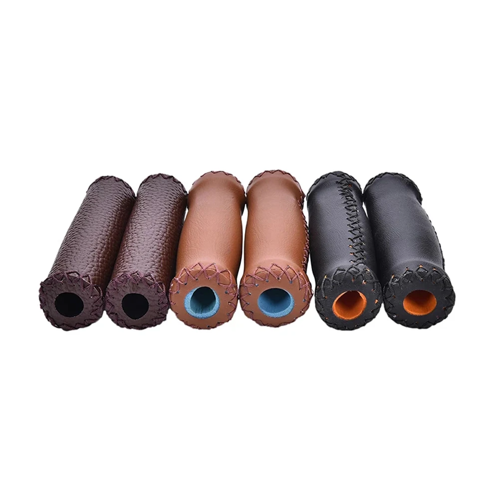 Material: cuero artificial diámetro: aproximadamente 22,2mm Longitud: aproximadamente 120mm/4,72 pulgadas cantidad: 1 par Color: negro, marrón, café el paquete incluye: 1x par de empuñaduras de manillar de bicicleta Ranura de diseño de mango ergonómico. Material de cuero artificial vintage, puede tener un efecto completamente antideslizante. Excelente tacto, pero también puede aumentar el efecto de absorción de golpes. Conducir bajo la lluvia o sudor, los guantes no son fáciles de deslizar, lo que mejora en gran medida la seguridad en la conducción. Mejora enormemente la textura exterior de la bicicleta y hace que su coche tenga más sentido. Aumente la eficiencia de la subida, ahorre fuerza física, aumente la velocidad.
