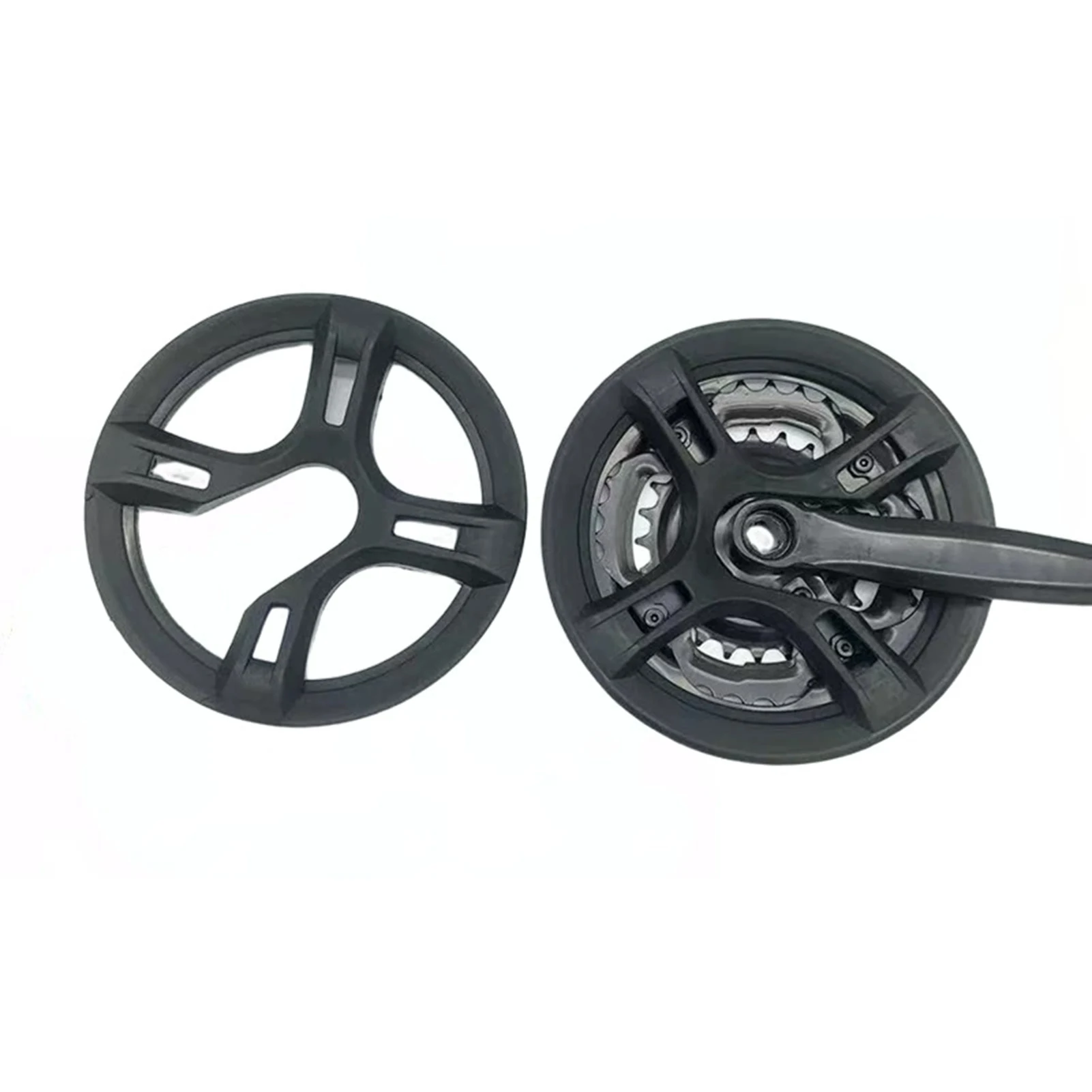 Scratch-Resistant Plastic Construction: Crafted from high-quality, scratch-resistant plastic, this chainring protector provides a resilient barrier that maintains its appearance and integrity through rough use on MTB trails or urban rides, ensuring long-lasting performance and a clean look.