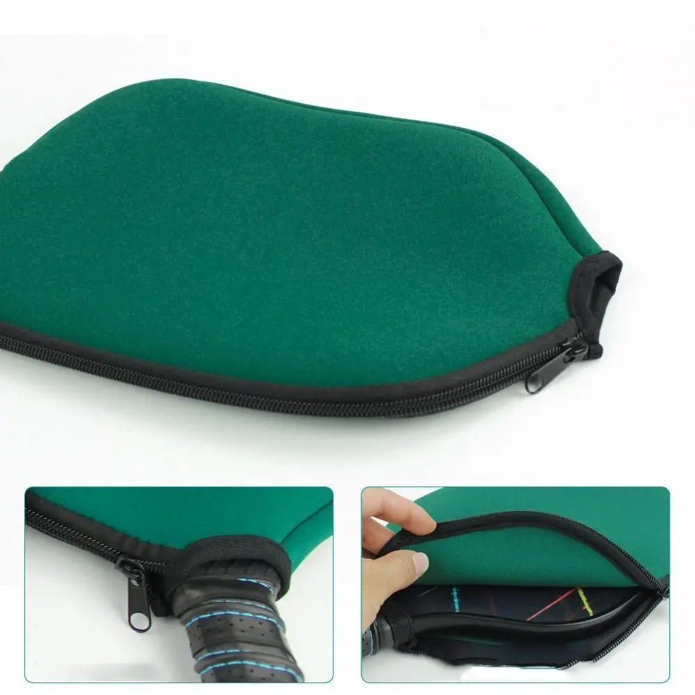 Material: neopreno Color: negro, azul, verde, púrpura Peso: 85g Tamaño: 30*22,5 cm (11,81*8.86in) Paquete incluido: 1 cubierta de paleta Pickleball adecuada para la mayoría de paletas de pickleball, raquetas, para mejorar la protección simple y mejor. La cubierta de paleta Pickleball está hecha de material de neopreno absorbente de golpes, impermeable, resistente al desgaste y duradero. Cierre de cremallera, fácil de deslizar la paleta dentro y fuera. Fácil de usar y cuidar. La funda de paleta ofrece una protección excelente y efectiva para la cara de su Paleta/raqueta de pickleball contra golpes, arañazos y rasguños. Fácil de transportar y almacenar, puede ponerlos en el paquete sin ocupar demasiado espacio.