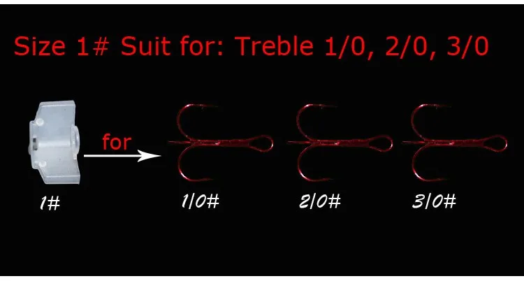 50 piezas protectores de gancho triple de plástico para Señuelos de Pesca de 5 tamaños para opción adecuado para herramienta de tamaño triple 1 2 3 1/0 2/0 3/0