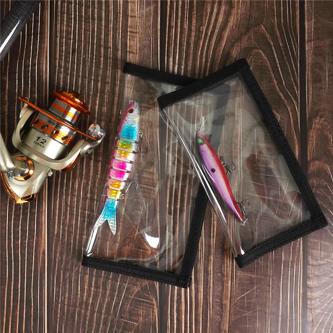 1. 【Construcción resistente a perforaciones】 Hecho de material de PVC más grueso, hace que sea duradero para proteger el gancho afilado. Es un paquete transparente, es fácil tomar el señuelo de pesca que necesita.