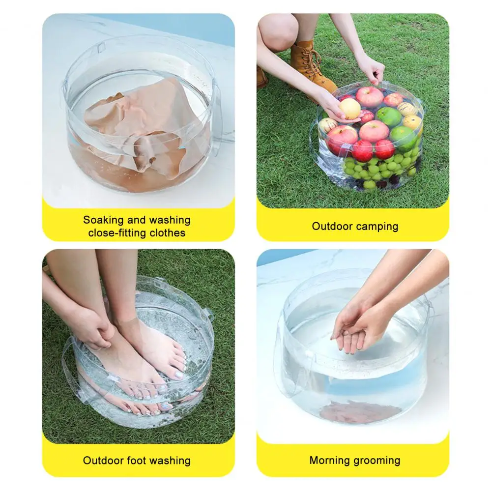 Cubo de agua plegable de 6,8/12L con asa portátil, bolsa de lavabo de PVC impermeable, cubo de almacenamiento de agua plegable multifuncional para acampar al aire libre y pescar