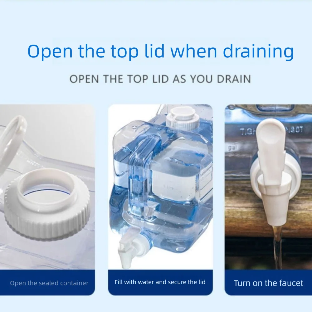 2.Faucet Design: Turn the knob to effortlessly regulate water flow with a unique faucet design. Enlarged opening allows fast and easy water filling for quick filling.