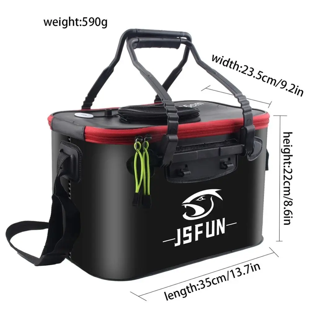 Origen: China continental Posición: barco de pesca en el océano Número de modelo: cajas de aparejos de pesca Material: EVA Color: negro Características: 1. Diseño plegable para una portabilidad conveniente y ahorro de espacio: Este cubo de pesca está diseñado para ser plegable, lo que permite un fácil transporte y almacenamiento sin ocupar mucho espacio. Su tamaño compacto lo hace ideal para viajes o actividades al aire libre. 2. Asas de transporte ergonómicas y cómodas: el cubo de peces vivos cuenta con asas de transporte humanizadas con un diseño cómodo. Estas asas proporcionan un agarre agradable y se pueden colocar a ambos lados del cubo cuando no están en uso, ahorrando espacio y asegurando comodidad. 3. Bolsillos laterales para mayor almacenamiento: La caja de peces vivos está equipada con bolsillos laterales moldeados por inyección adicionales, perfectos para almacenar toallas y pequeños accesorios de pesca. Estos bolsillos ofrecen un acceso conveniente a artículos de uso frecuente mientras se pesca. 4. Anillo de acero incorporado para estabilidad y retención de forma: el tanque de agua exterior tiene un anillo de acero incorporado en la boca, lo que garantiza la estabilidad y evita la deformación incluso cuando se llena con agua u otros contenidos. Esta característica garantiza su durabilidad y rendimiento duradero. 5. Parte superior de malla transpirable con cierre de cremallera para mayor comodidad: la parte superior del cubo de cebo para peces está diseñada con una tela de malla transpirable que es duradera y proporciona una excelente ventilación. También cuenta con un cierre de cremallera para una fácil apertura y cierre, lo que permite un acceso rápido al contenido del interior. Además, la cremallera se puede usar para asegurar firmemente la cubierta abierta del cubo cuando sea necesario. Tamaño 30cm: 30cm/11.81in x 20,5 cm/8.07in x 18,5 cm/7.28in Tamaño 35cm/13.78in x 23,5 cm/9.25in x 22cm/8.66in Tamaño 40cm: 40cm/15.75in x 25,5 cm/10.04in x 22,5 cm/45cm Tamaño 8.86in: 45cm/17.72in x 26cm/10.24in x 23cm/9.06in Tamaño 50cm: 50cm/19.69in x 28,5 cm/11.22in x 23cm/9.06in El paquete incluye: 1 * Cubo de pesca