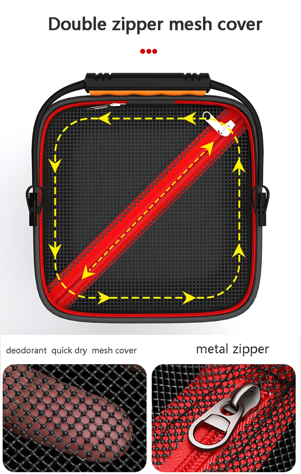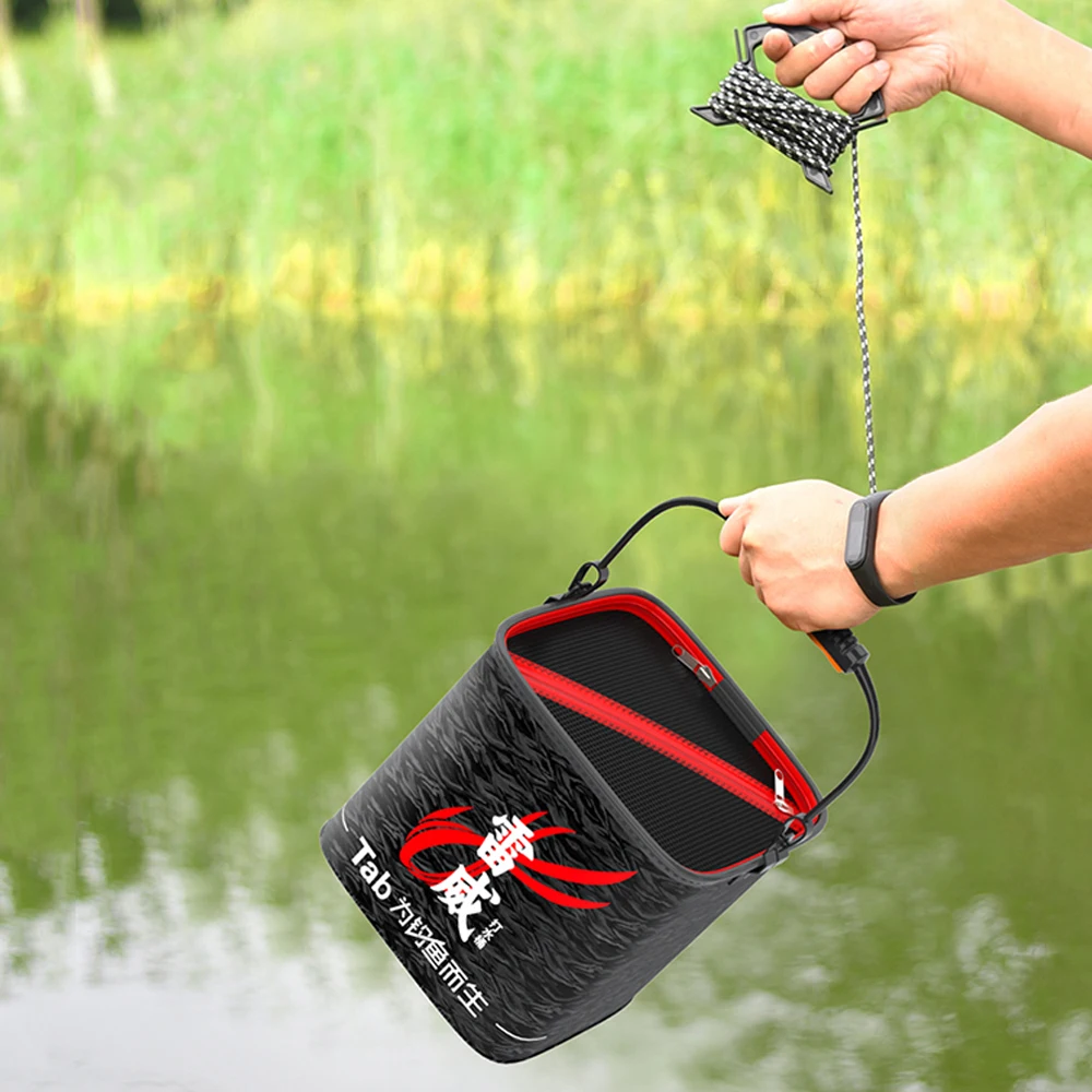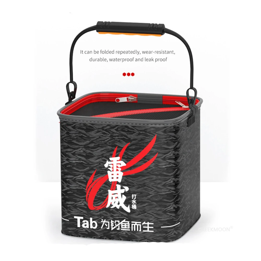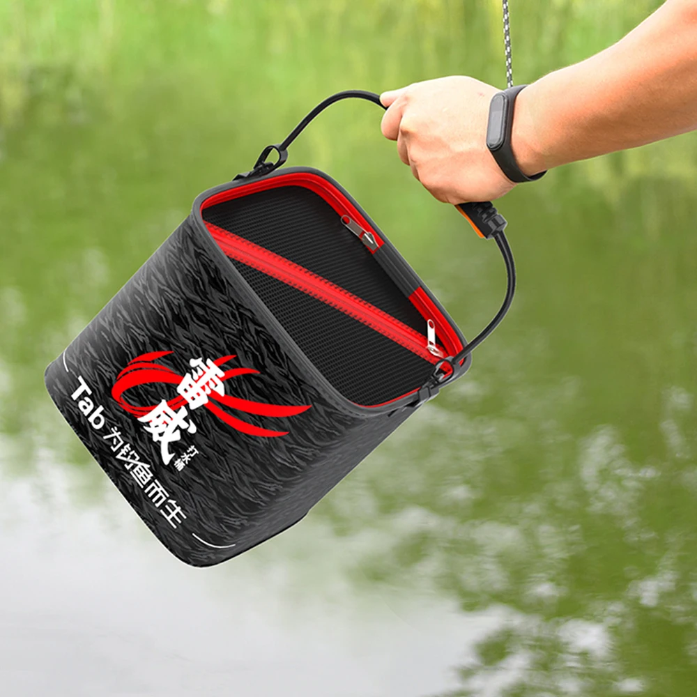 Cubo de pesca 3D para peces vivos, conexión sin costuras de una pieza, caja de pescado viva espesante portátil, almacenamiento de agua con doble cremallera