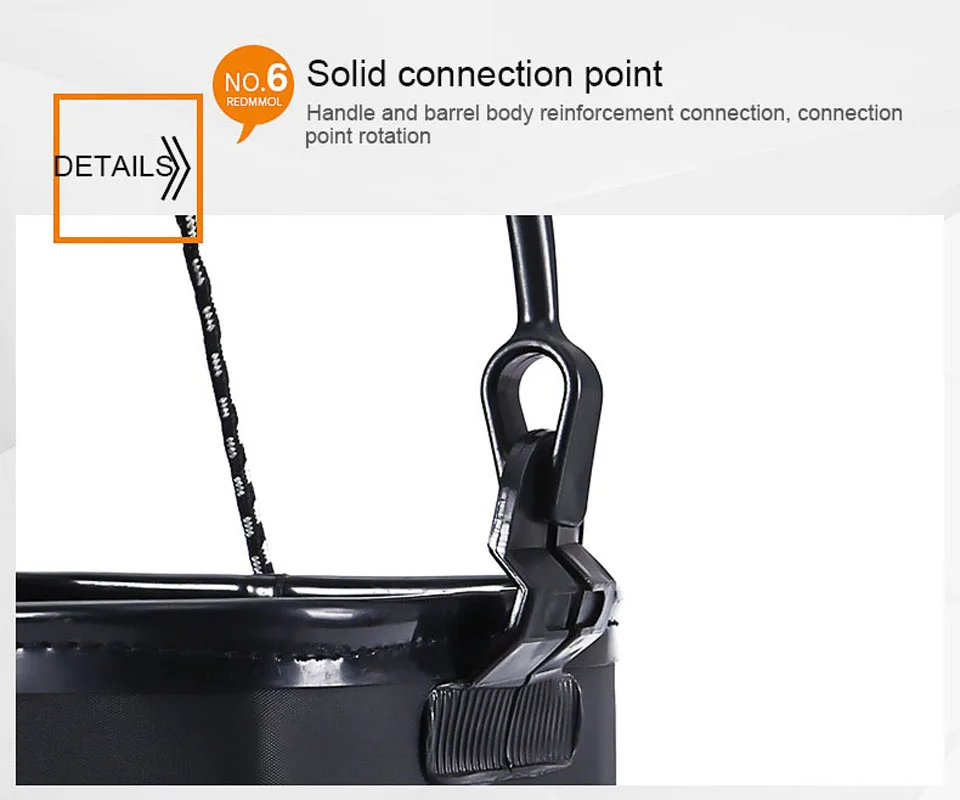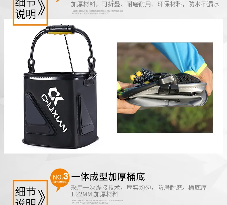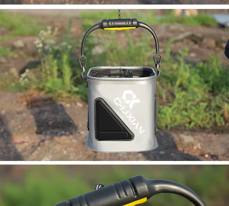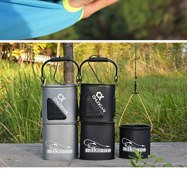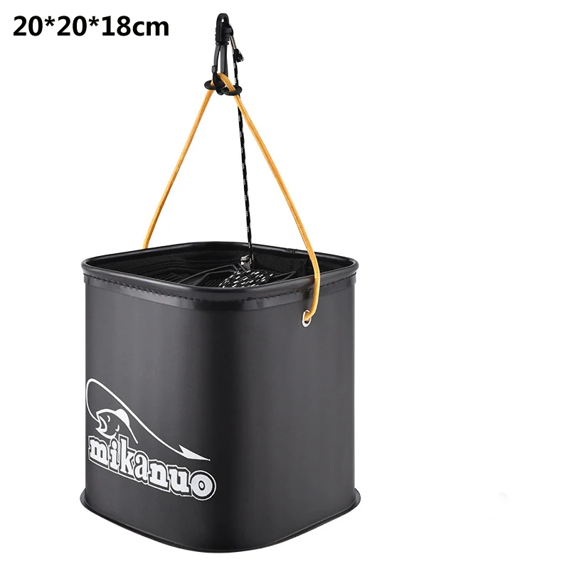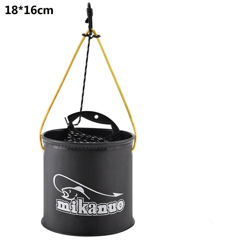 El cubo está bien. El material es grueso y ocupa poco espacio cuando está plegado. Para pescado es ciertamente demasiado pequeño, pero para lavarse las manos, añadir agua a la cebo o algo similar, el tamaño es bastante adecuado.