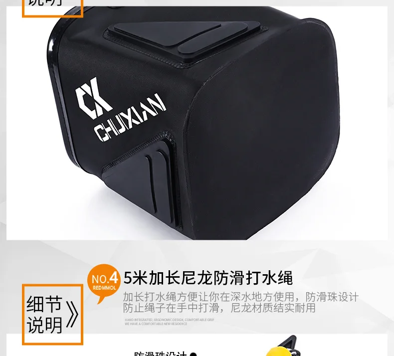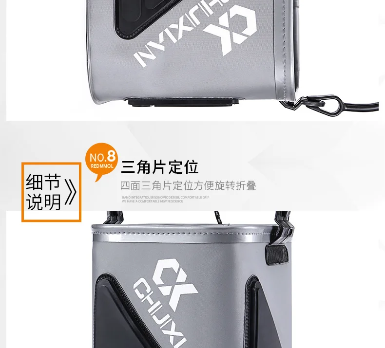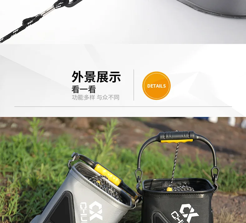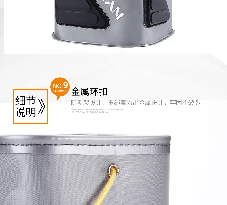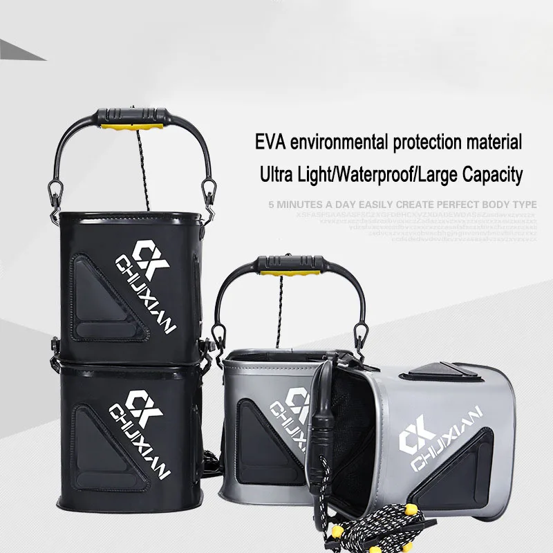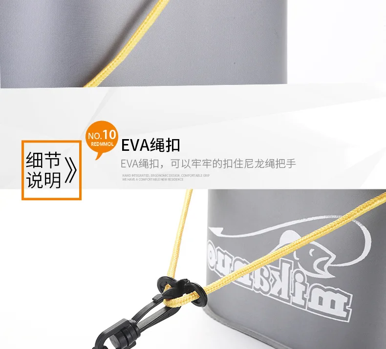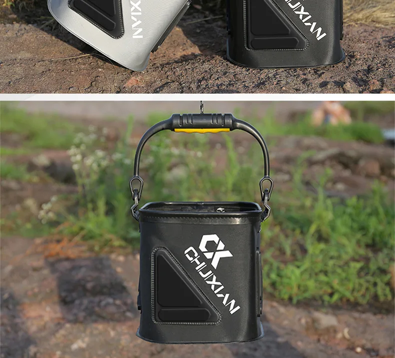 El cubo está bien. El material es grueso y ocupa poco espacio cuando está plegado. Para pescado es ciertamente demasiado pequeño, pero para lavarse las manos, añadir agua a la cebo o algo similar, el tamaño es bastante adecuado.