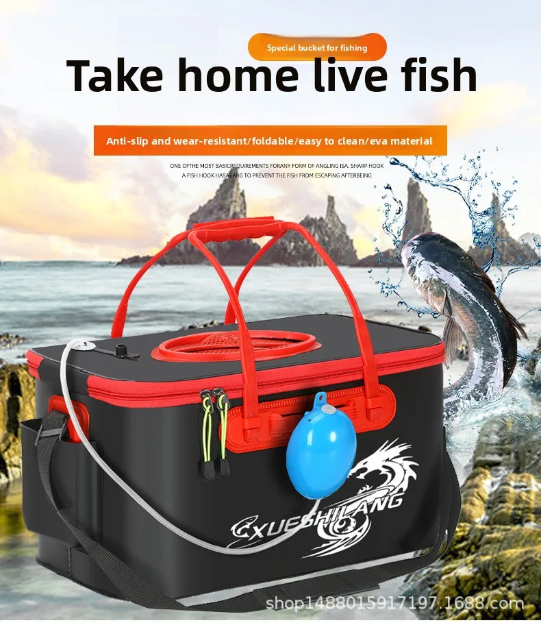 Cubo de pesca plegable y grueso, cubo para peces vivos sin bomba de oxígeno, tanque de agua portátil EVA, pesca al aire libre, caja para peces vivos