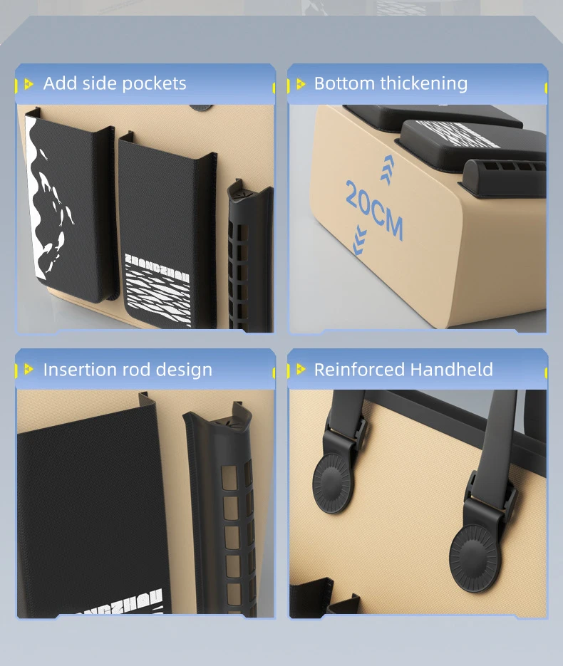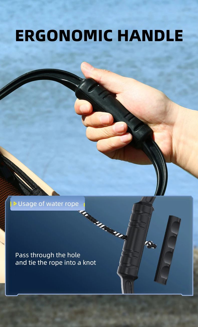 6.Diseño de caña insertada en el cuerpo de la bolsa de pesca, almacenamiento más conveniente, mango reforzado, soporte de carga mejorado