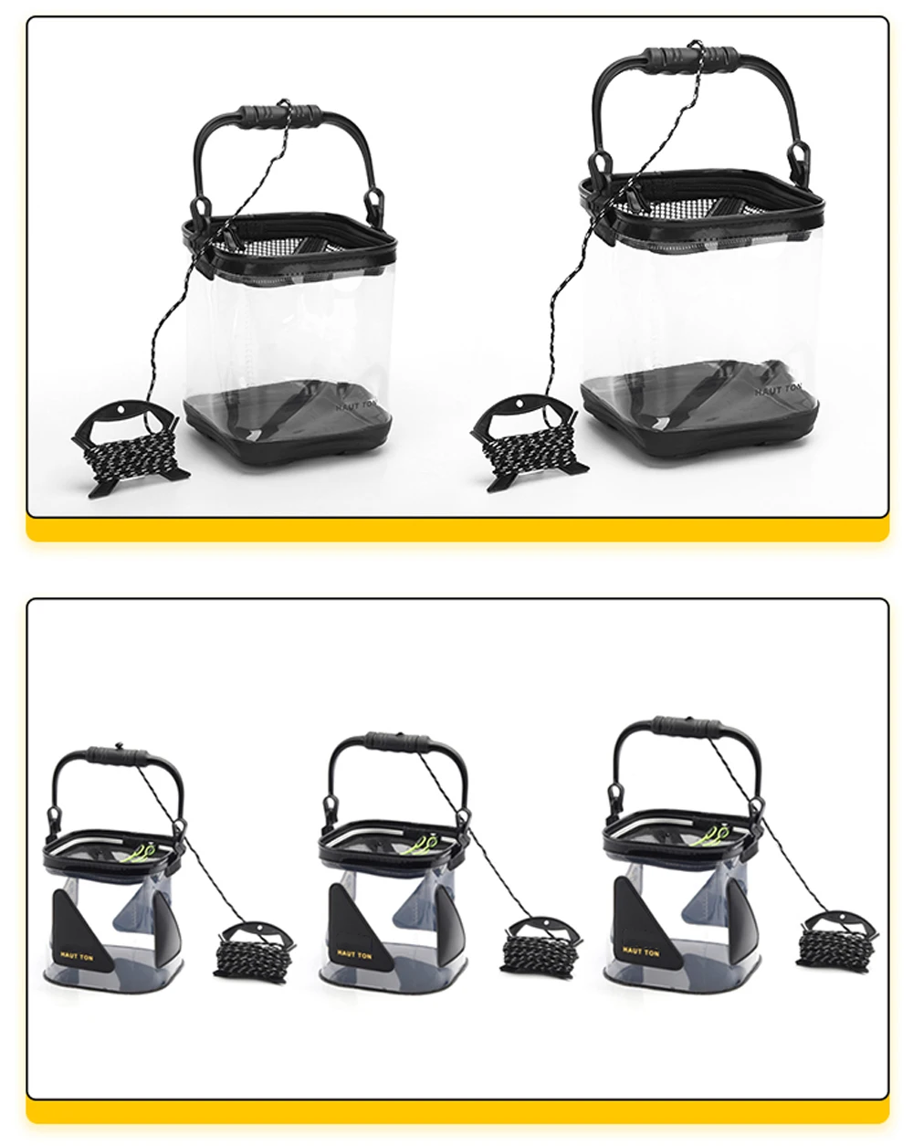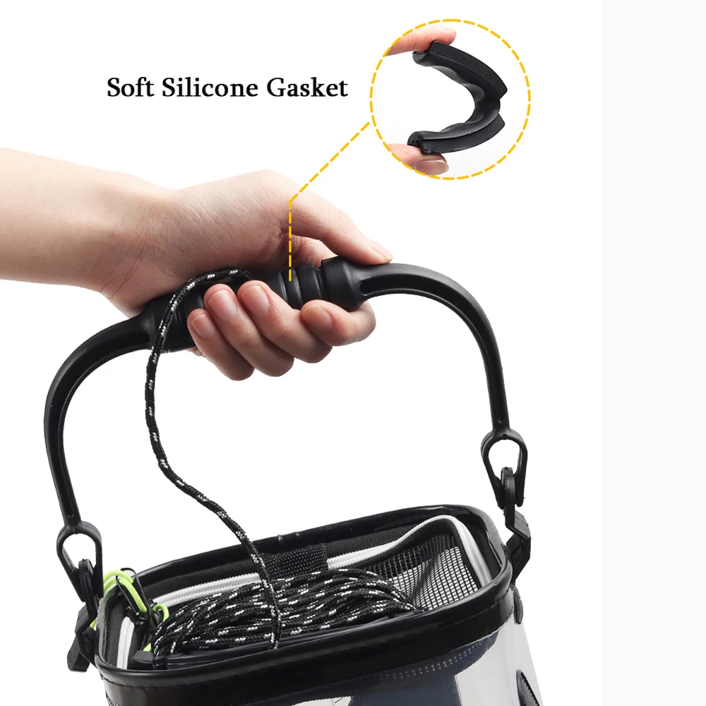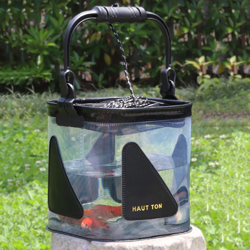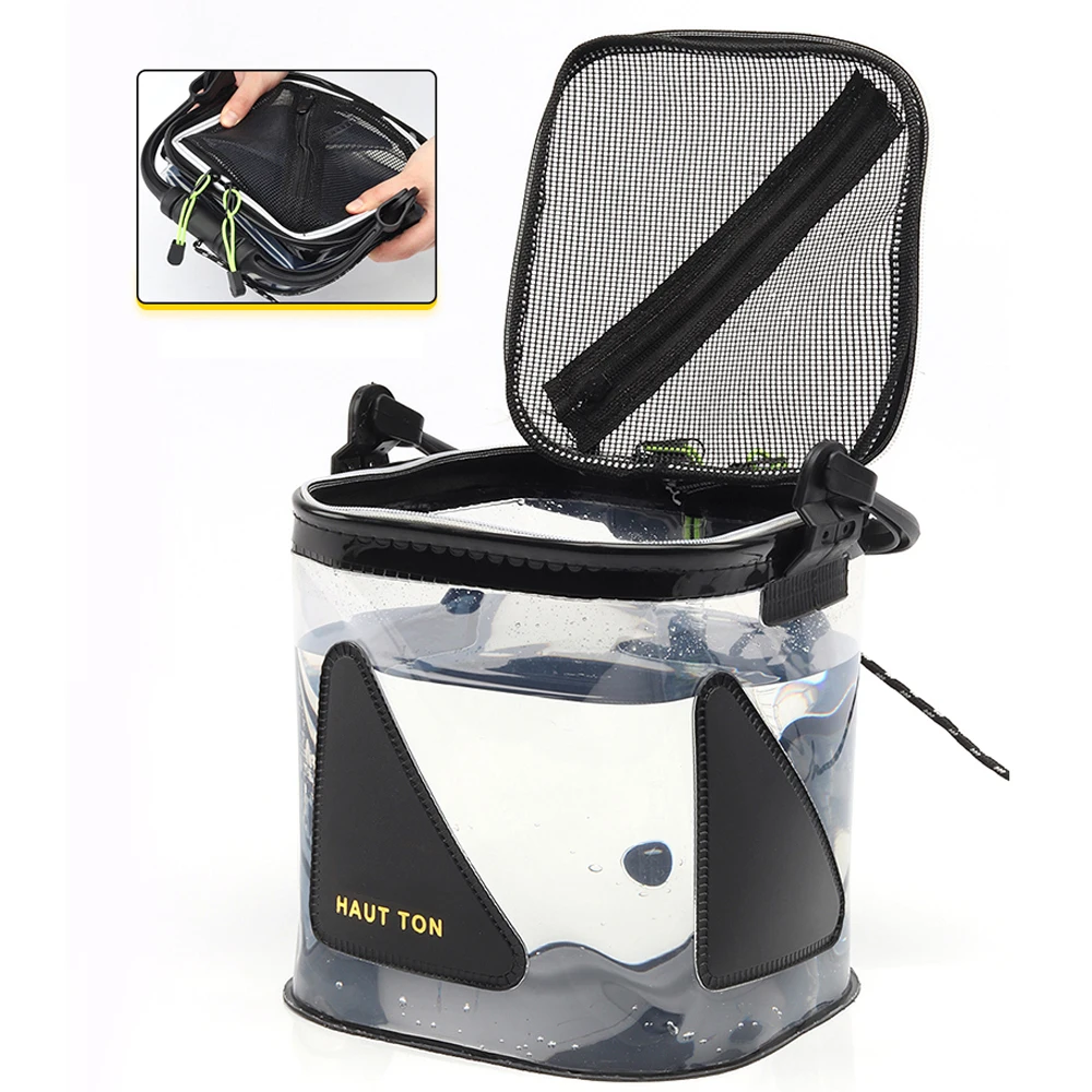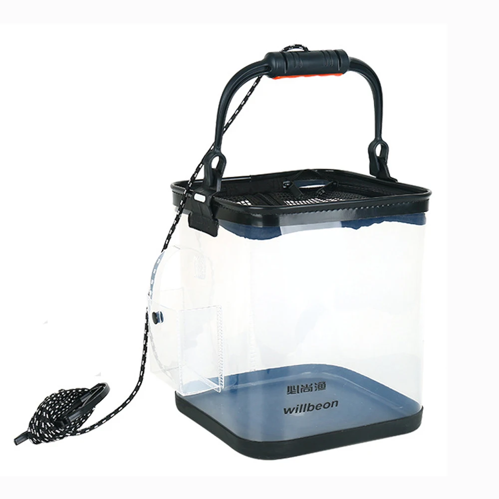 Cubo de pesca portátil para peces vivos con bolsillo lateral, CAJA PLEGABLE gruesa, bolsa de almacenamiento, tanque de Camping, contenedor de agua, aparejos